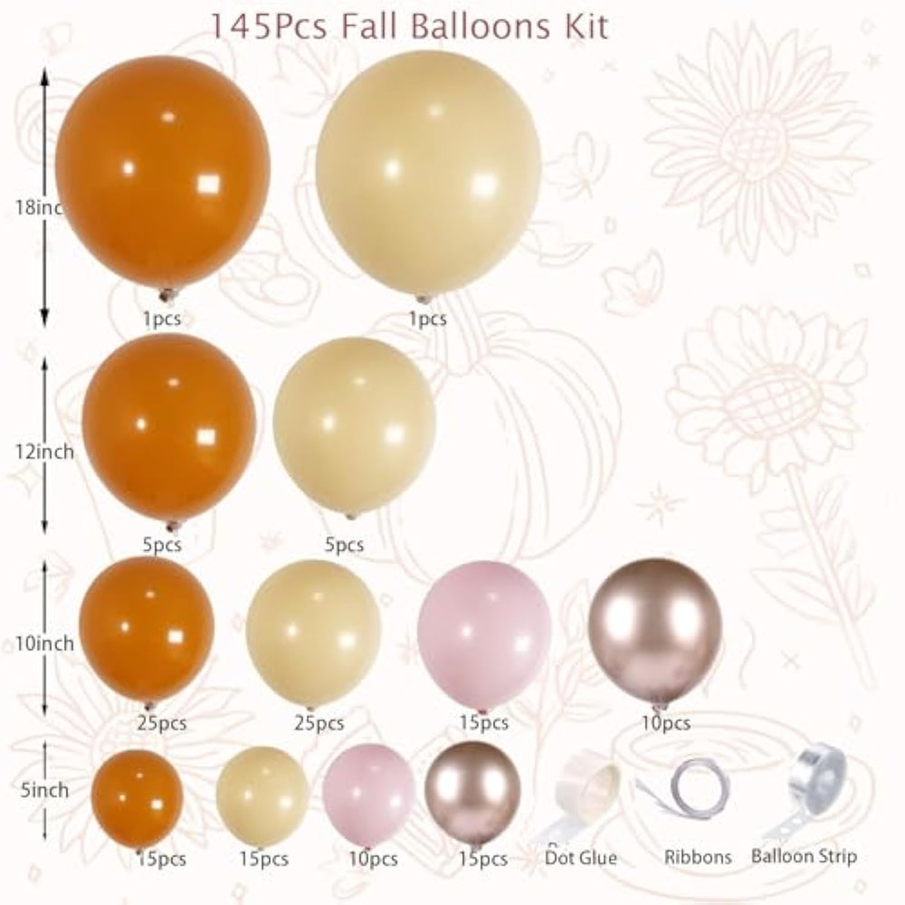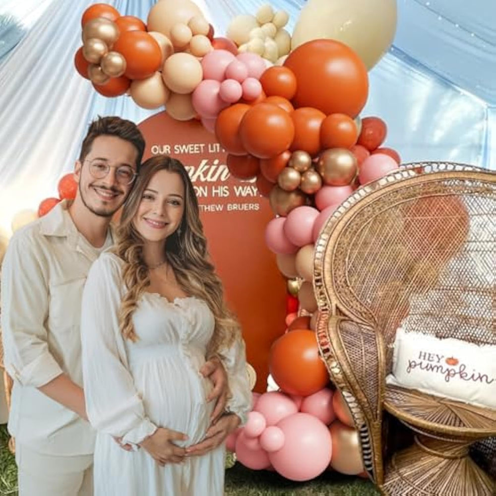 This fall pink balloon arch kit includes 142 latex balloons in burnt orange, nude, pink, and champagne gold across four sizes, along with glue dots, ribbon, and balloon tape for easy setup. Featuring soft autumn colors, it’s perfect for creating a boho-inspired atmosphere at baby showers, birthdays, weddings, and Thanksgiving celebrations. The mix of dusty pink, nude, and warm seasonal tones pairs beautifully with pumpkin themes, cutie baby shower décor, or rustic party styles, adding a cozy and elegant touch to any event.