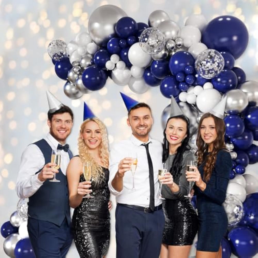 | Package Include: The Blue White Silver Balloons Garland Arch Kit Contain 57Pcs Navy Blue Balloons(18Inch 2Pcs ,12Inch 10Pcs , 10Inch 20Pcs, 5Inch 25Pcs), 47Pcs Metallic Chrome Silver Balloons(18Inch 2Pcs, 12Inch 5Pcs, 10Inch 20Pcs, 5Inch 20Pcs), 5Pcs 12Inch Silver Confetti Balloons, 30Pcs White Balloons (10Inch 10Pcs?5Inch 20Pcs), 32 Feet Ribbonx1, Glue Dotsx60, Decorative Stripx1, Long Balloonsx5 | | Great Quality: The Navy Blue Party Decorations Are Made From Great Quality Latex That Is Easy To Inflate, Not Easy To Explode. In Addition, It Is Recommended To Use A Balloon Pump To Inflate Quickly, But Do Not Over Inflate To Maintain Good Shape | | Easy To Use: The Balloon Kit Have Clear Long Balloons, Ribbon, Glue Dot, Decorative Strip To Help Complete Balloon Arch Kit More Easily. First, Inflate The Balloons With Balloon Pump, Crossing Each Other To Form Some Balloon Clusters. Then, Insert The Balloon Knot Into The Decorative Strip Hole, Or Tie Them Together With Ribbon Or Long Balloons To Form Balloon Arch. Finally, Hang It On The Party Backdrop, Use Glue Dots To Attach 5 Inch Balloons To Fill Gap Area | | Suitable For Many Occasion: The Navy Blue Silver And White Balloon Arch Kit Is Great For Birthday Decorations, Blue And Silver Decorations, Wedding Decorations, Anniversary Decorations, New Year Decorations 2025, Bachelorette Party Decorations, Baby Shower Decorations, Something Blue Before I Do Bridal Shower Decorations, Graduation Decorations 2025 | | Warm Tips: If There Are Any Problems With The Blue Balloon Kit, We Will Work Hard To Solve Them Until You Are Satisfied | |
