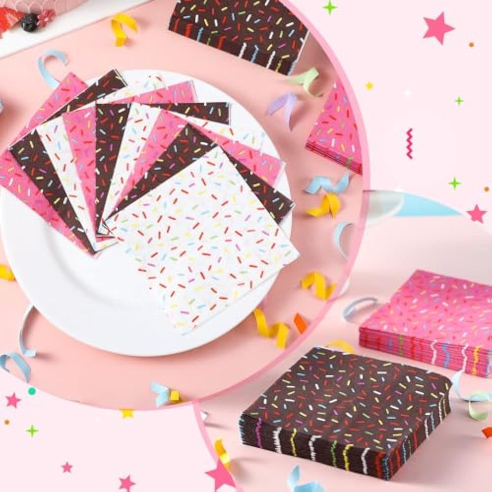 | Ideal Size: When Folded, The Donut Sprinkle Napkins Measure Approximately 5'' X 5'', Good For Elegantly Arranging On Your Table Or Counter; When Expanded, They'Re Approximately 10'' X 10'', Providing Ample Surface Area For Effective Clean Up Or Wrapping Up Small Portions Of Food | | Suitable Pack: Each Package Comes With A Total Of 3 Options, Each Containing 50 Sheets; This Gives You Ample Quantity To Deck Out Your Party With These Ice Cream Napkins Without Having To Worry About Running Out | | Nice Material: The Donut Party Supplies Are Made From A Double Layered Paper That Ensures They Are Not Only Soft But Also Sturdy, Thick, And Highly Absorbent; This Makes Them The Good Choice For Your Dining Needs, Effortlessly Cleaning Up Spills And Smudges; Their Tear Resistant Property Makes Them Withstand Rough Handling, Making Them An Excellent Choice For Party Environments | | Multipurpose Functionality: These Disposable Sprinkle Napkins Are Not Just Limited To Eating, But They Can Be Applied For Concert Parties, Birthday Parties, Baby Showers, Or Any Other Gathering; Keeping Your Event Clean And Tidy Was Never Easier | | Sweet Style: The Sweet Donut Design Of Our Donut Sprinkles Napkins Is Sure To Catch The Eye And Add A Unique Touch To Your Table Setting; This Sweet Style Is Not Only Appealing To Your Guests But Also Makes Cleaning Up A More Delightful Experience | |