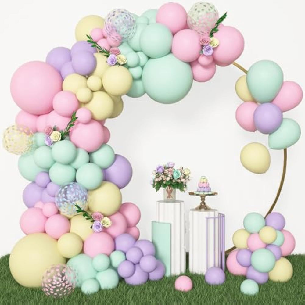 | Sufficient Quantity Of Pastel Balloons: The Pastel Balloon Arch Includes 3 Pcs 18'' Pastel Balloons(Green/Yellow/Pink), 20 Pcs 12'' Pastel Yellow/Pastel Green/Pastel Purple/Pastel Pink Balloons, 5 Pcs 12'' Pastel Confetti Balloons, 50 Pcs 10'' Pastel Pink/Pastel Green/Pastel Purple/Pastel Yellow Balloons, 65 Pcs 5'' Pastel Pink/Pastel Yellow/Pastel Purple/Pastel Green Balloons And 10 Pcs Balloon Tools(Flower Balloon Clips, Hooks, Balloon Arch Strip, Tying Tool, Glue Points, Ribbon) | | Premium Balloons: We Take Great Pride In The Quality Of Our Pastel Party Decorations, Which Have Undergone Rigorous Testing To Ensure Their Accessibility To Children; Our Pastel Balloons Are Made Of Great-Quality Latex That Is Easy To Inflate And Available For Kids To Use; The Baby In Bloom Balloon Arch Kit Is Also Decent, Flexible, And Not Easily Broken; Come And Enjoy A Happy Party With Spring Decorations | | Use In Various Occasions: Our Pastel Balloon Garland Kit Is Good Choice For All Kinds Of Parties And Special Festival Occasions; Whether You'Re For Pastel Birthday Decorations, Pastel Rainbow Party Decorations, Spring Party Decorations, Spring Party Decorations, Mother Day Decorations, Wildflower Party Decorations, Baby In Bloom Baby Shower Decorations, Our Wildflower Balloon Arch Kit Bring A Delightful And Charming Touch; Come To Organize An Unforgettable Party Background For Photos With Your Families And Friends | | Easy To Use: Our Pastel Balloons Come With Balloon Tools Which Can Help You Create Easier And Faster; You Can Make Daisy Balloons With Flower Clips; Hooks Can Help Secure Balloons Better Where You Need; Design Your Pastel Party Decorations By Inflating Balloons With Helium Or Air, And Then Attach With The Arch Strip Or Ribbon; Besides, Use Glue Points To Add Small Pastel Color Balloons To The Garland; Mix Balloons Of Different Sizes And Colors For Endless Style | | Notes: Choking Hazard; Your Safety Matters Most; Please Use Our Pastel Balloon Arch Kit Cautiously; Parental Supervision Is Crucial For Children Under 12 Due To Choking Hazard; Dispose Of Damaged Baby Shower Balloons Promptly To Prevent Injuries; Keep Pastel Balloons Away From Heat, Wind And Sharp Objects; Get Ready For A Magical Celebration With Pastel Balloons In Different Sizes | |
