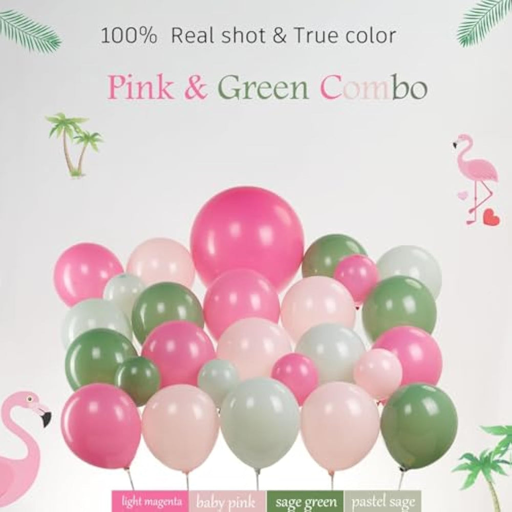 Create a vibrant and stylish party setup with our Pink and Green Balloon Arch Kit, featuring a mix of 5, 10, 12, and 18-inch balloons in hot pink, pastel pink, sage green, and pastel green. Designed for a cheerful and energetic atmosphere, this kit includes a glue dot hinge tool set for easy assembly. We ensure true-to-life colors through real photography, allowing you to confidently design your perfect party decor. Ideal for baby showers, jungle safari themes, baptisms, first birthdays, woodland parties, and more, this versatile garland adds a unique and memorable touch to any celebration. Carefully packaged with setup tools and tutorials, this kit is easy to assemble and works best when filled with air, taking about an hour to complete a stunning display.