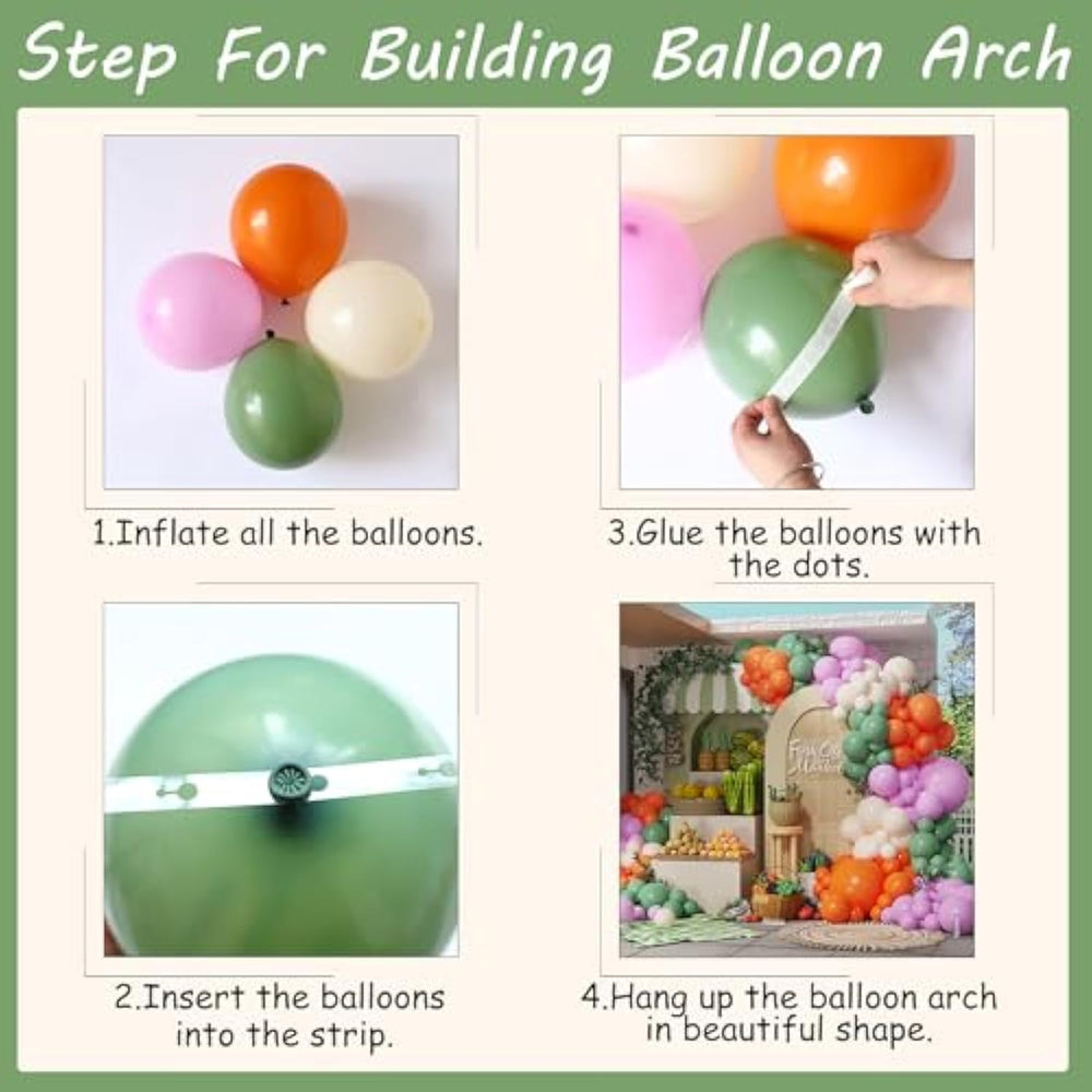 This Bridal Shower Balloon Arch Garland Kit includes 154 balloons in sage green, orange, ivory white, and taro purple (2×18", 90×10", 60×5"), along with glue dots and a balloon strip for easy setup. Made from durable latex, the balloons are thick, long-lasting, and suitable for both indoor and outdoor celebrations. Perfect for bridal showers, bachelorette parties, and themed brunches, the lively mix of colors creates a fun and festive atmosphere that pairs beautifully with florals, faux fruits, or seasonal accents. Easy to assemble, simply inflate up to 85%, attach balloons to the strip, and layer sizes and colors to design a stunning arch or backdrop for unforgettable pre-wedding moments.
