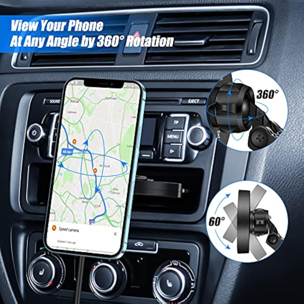 | ?15W Mag-Safe Wireless Car Charger Designed For Iphone 13/12 Series?The Magnetic Mag-Safe Car Charger Mount Is Specially Designed For Iphone 13/13 Pro/13 Pro Max/13 Mini/12/12 Pro/12 Mini/12 Pro Max /Magnetic Mag-Safe Cases. It Will Auto-Lock Aligned With The Charging Coil To Max 15W Magnetic Fast Charging And More Stable Charging. | | ?Strong Magnetic Attachment Never Fall Off?Built-In 38 Ring Magnets Can Generate Super Strong Magnetic Force Between The Charger And The Phone, Ensuring The Ultimate Stability Of The Phone. Only Suitable For Iphone 13/12 Series Or Phone With Official Mag-Safe Case, Other Phones And Phone Cases Are Not Compatible. | | ?Auto-Alignment Smart Hvdi Chips Protection?Perfectly Adapt To The Iphone 13/12 Series, Automati