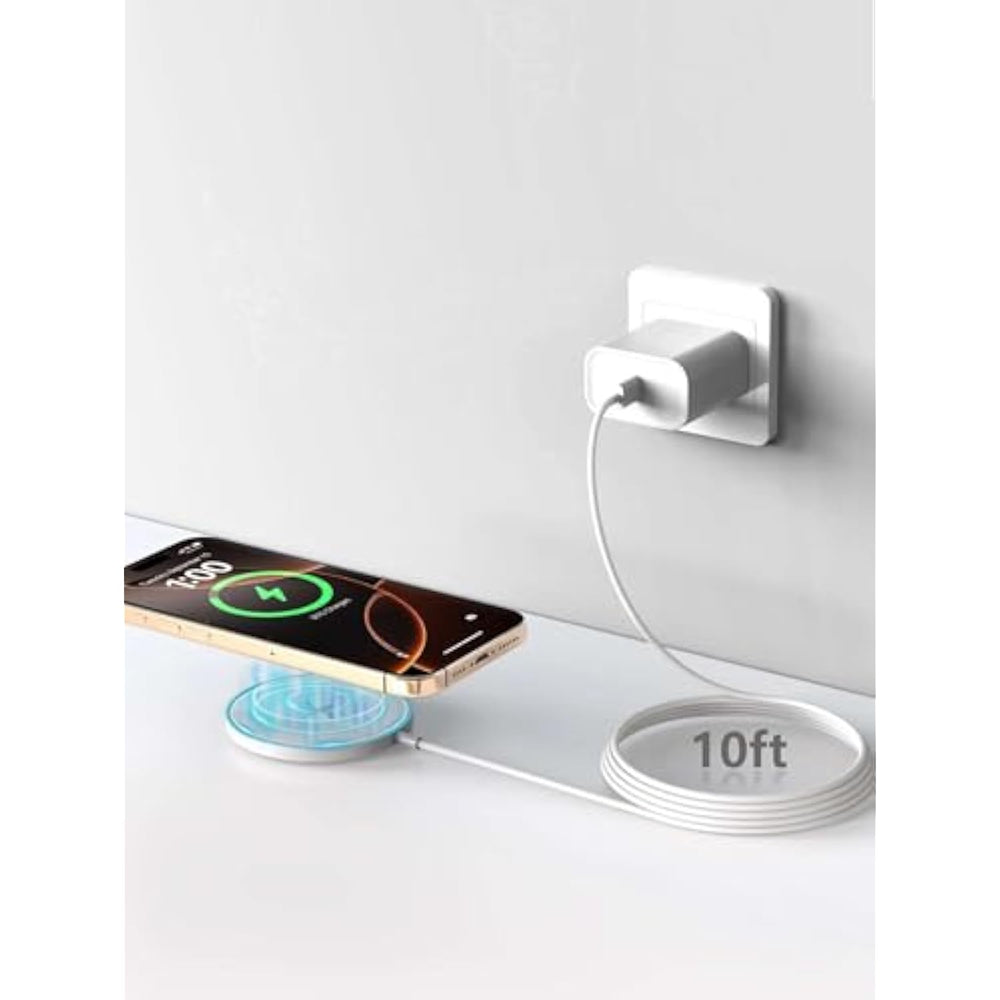 | [10Ft Ultra Long Wireless Fast Charger For Iphone 16]: Because I Need Longer Charging Distance And Improved Charging Convenience (Like To Lie On Bed, Sofa). Why Doesn'T The Original Produce A Long Cable Because Of High Production Cost And Loss. Note: 10Ft Will Be A Little Slower Than The Short Cable | | [Powerful Magnet And Stable Adsorption]: Wireless Magnetic Charger Got A Great Grip On The Phone With Mag, It Holds The Phone In The Optimal Position For Maximum Power Transfer. No Need To Pass Through The Cell Phone Interface When Charging, Supports 360° Charging In Any Direction. | | [Fast Wireless Charging 15W Max]: 9V Fast Charging For Iphone 8 To 16 Series (7.5W To 15W), Magnetic Wireless Charger For Iphone 16/16 Plus/16 Pro/16 Pro Max/15/15 Plus/15 Pro/15 Pro Max/14/14 Plus/14 Pro/14 Pro Max /13/13 Mini/13 Pro/13 Pro Max/12/12 Mini/12 Pro/12 Pro Max.Wireless Charger For Airpods Pro 3/2 (Requires Wireless Charging Case), For Samsung Galaxy S25 Ultra S25 Plus S24 Ultra S23 Fe S22 S21 S20 Z Flip6/Fold6,Pixel 9Pro 8 | | [Advanced Safety Protection + Efficient Cooling] Built-In Smart Chip Monitor For Overcharge, Overcurrent, Overvoltage, Overheat And Short Circuit. As Time Increases, The Charging Pad Will Generate Heat, But The Heat Meets Safety Standards | | [Package Includes]: 1-Pack Of 15W Usb-C To Magnetic Wireless Iphone Charger Pad 10Ft And Type-C 20W Pd Wall Charger | |