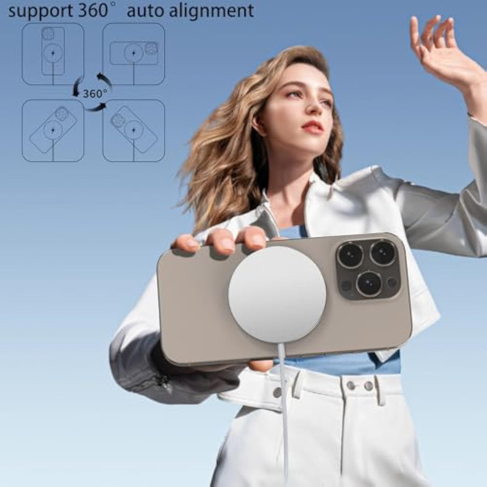 | ?For Iphone 16/15/14/13/12?Specially Designed For Iphone 16/16 Plus/16 Pro/16 Pro Max/15/15 Plus/15 Pro/15 Pro Max/14/14 Plus/14 Pro/14 Pro Max/13/13 Mini/13 Pro/13 Pro Max/12/12 Mini/12 Pro/12 Pro Max And For Apple Mag-Safe Cases. It Is Also Compatible With Other Wireless-Charging-Enabled Phones When Placed Flat Or With A Magnetic Case. | | ?Fast Wireless Charging?For Optimal Charging Performance, Please Use An Adapter With 18W Or Higher. Please Note: A Normal Case Will Weaken The Magnetic Force And Will Not Stick To The Charger, Please Use A Magnetic Case. | | ?Slim Portable?A Slim Profile And Lightweight Design Make This Magnetic Phone Charger Perfect For Travel. Easy To Toss In Work, Gym Or Travel Bag. Perfect For Your Nightstand, Desk, Tabletop, Bedside, Counter And Kitchen Island. | | ?360°Magnetic Alignment?The Magnet Wireless Charging Pad Automati