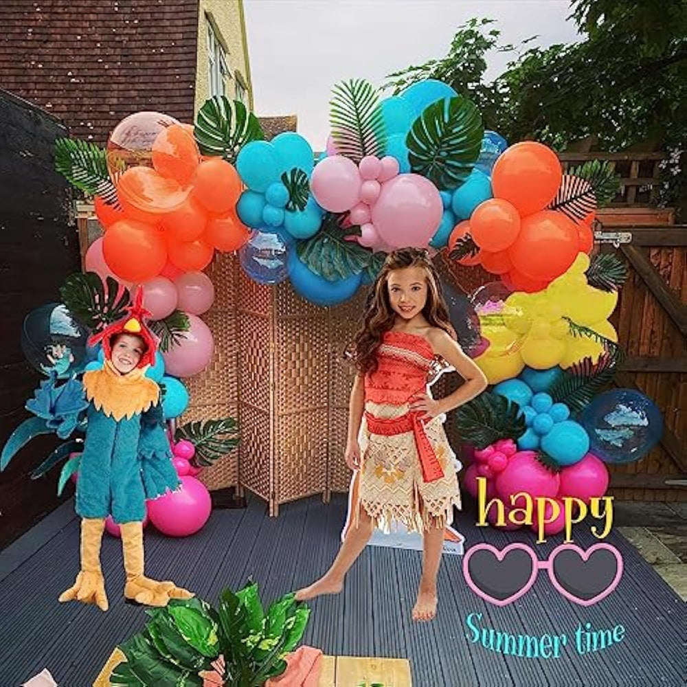 Bring vibrant island vibes to your celebration with this 160-piece tropical balloon garland kit, featuring hot pink, blue, yellow, and orange balloons in four sizes. Designed with color correction technology for consistent, vivid tones, the kit also includes string and clear instructions for easy setup. Made from durable, safe latex rubber and fully inspected for quality, it’s perfect for baby showers, summer birthdays, beach parties, or Hawaiian luaus. Plus, free replacements are available to ensure a stress-free party experience.