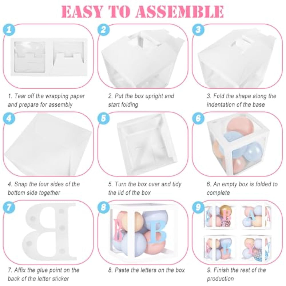 Gender Reveal Decoraitons: 4 Baby Boxes, 3 Sets Of "Baby" Letters, 1 Set 26 Letters, 1 Pcs 24In Star Foil Balloon, 5 Pcs 10In Star Foil Balloons,1 Pcs 18In Gender Reveal Balloon, 16 Pcs 12In Balloons(3Pink Confetti , 3Blue Confetti , 5Pastel Pink, 5Pastel Blue), 53 Pcs 10In Balloons(15Pastel Pink ,15Pastel Blue , 15Coffee Brown, 8Gold Metallic ),40Pcs 10In Balloons(15Pastel Pink ,15Pastel Blue,10 Coffee Brown ), 2Pcs Pink Or Blue Heart Confetti, And 4Pcs Tools | Gender Reveal Box + Balloons : Our Gender Reveal Party Supplies Perfectly Combines Pink And Blue Balloons Color; Put The Balloons In A Transparent Baby Box With Pink And Blue Letters, Which Perfectly Responds To The Theme Of The Gender Reveal Party And Adds A Strong Atmosphere To Your Gender Reveal Party | Premium Quality: Our Gender Reveal Boxes For Balloons Are Made Of Premium Quality Cardboard And Transparent Plastic; The Baby Boxes With Letters For Baby Shower Is Easy To Assemble, Reusable And Foldable; The Latex Balloons Is Made Of Natural Latex, Non-Toxic, Thick, Not Easy To Break, Safe To Be Used For Children And Pregnant Women | Used In Variety Occasions: Our Gender Reveal Balloon Arch And Box Can Be Used Repeatedly In Many Occasions; Suit For Gender Reveal Decorations, Birthday Party For Girls Or Boys, Twinkle Twinkle Little Star Gender Reveal Party, Baby Shower Decorations For Girl Or Boy, Bridal Shower, Wedding Party Etc; It Will Be An Excellent Photo Booth Background And Leave Unforgettable Memories For You | Easy To Assemble: The Baby Boxes Are Pre-Folded In The Package, And You Can Assemble It According To The Steps In The Picture; Then Use 100-Point Glue To Stick The Letters On The Transparent Box, And Put The Balloon In; And You Can Use Our Balloon Tools To Diy Desired Balloon Arch; These Balloon Tools Can Release Your Hands And Will Help You Make A Beautiful Balloon Arch Easier And Faster |