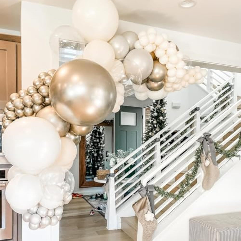 Create an unforgettable celebration with the Champagne Bottle Balloon Garland Arch Kit, perfect for birthdays, weddings, baby showers, bachelorette parties, anniversaries, and more. Made from high-quality latex, these thick and durable balloons stretch well when inflated and can float with helium. The kit includes 165 pearl white, sand, and champagne gold balloons, plus an extra-large champagne bottle balloon to create a stunning party backdrop. Easy to assemble, simply inflate and hang them on trees, walls, windows, doorways, or tables to enhance any event with a stylish and festive touch.