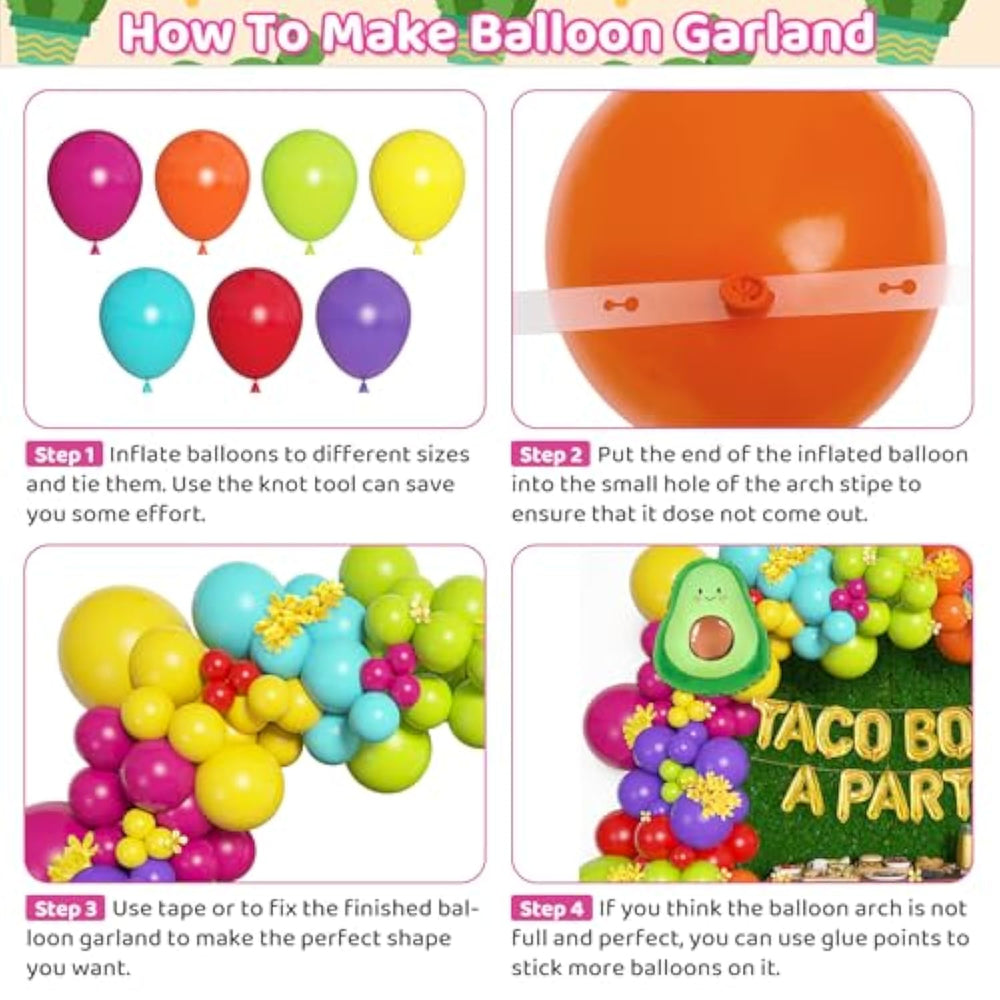 | Fiesta Party Supplies - Fiesta Balloons Was Been Rigorously Tested And Selected Manually, Made With Natural Latex, Safe To Be Used By Children. And Fiesta Balloons Is Not Easy To Break, Have Good Ductility. These Fiesta Balloons Can Be Filled With Air, Helium. The Balloon Tool Can Make The Balloon Knot Quickly, Easy To Stick Together And Form A Fiesta Balloon Garland, Release Your Hands! | | Widely Occasions - This Fiesta Balloon Arch Kit Can Be Used To Make Balloon Arch Garlands For Parties Of All Occasions And Includes Everything You Need To Make A Beautiful Mexican Party Decorations. And It Can Be Used In Wide Scenes, Mexican Party, Fiesta, Taco Party, Cactus Party, Cinco De Mayo Celebration, Birthday Fiesta, Baby Shower, Carnival, Coco Or Day Of The Dead Themed Party, Etc. Make Your Decor Eye-Catching And A Memorable Celebration! | | Fiesta Party Decorations- 169Pcs: 18'' Orange/Rose Red/Yellow/Green Balloon(4Pcs), 10''Orange/Rose Red/Yellow/Green/Purple/Blue/Red Balloon(100Pcs), 5'''Orange/Rose Red/Yellow/Green/Purple/Blue/Red Balloon(55Pcs), 1Pcs Chili Foil Balloon, 1Pcs Cactus Balloons With Hats,1Pcs Avocado Balloons,,1Pcs Taco Bout A Party, 4Pcs Balloon Tool(Balloon Arch Strips,Tying Tool,100 Glue Points, Ribbon), Meet All Your Mexican Party Decorations Needs. | | Easy To Assemble - Our Fiesta Party Supplies Also Comes With 4 Balloon Accessories, Including Balloon Arch Strip, Glue Points, Tying Tool And Ribbon. It Is Very Easy To Make A Beautiful Fiesta Balloon Garland Arch With These Tools. It Only Takes About 30 Minutes. These Tools Can Help You Build A Perfect Fiesta Balloon Garland To Enrich Your Mexican Fiesta Party Decorations. Different Sizes And Color Help The Fiesta Balloon Arch Looks Fuller And More Organic! | | Warning - Choking Hazard! Children Under 13 Years Old Can Choke Or Suffocate On Uninflated Or Broken Balloons! Parents Supervision Required! Keep Uninflated Balloons From Children! Discard Broken Balloon At Once. | |