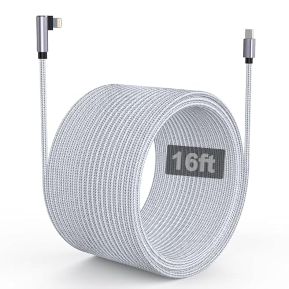 | ?Right Angle Usb C To Lightning Cable?The Special 90 Degree Angle Design Is Especially Convenient To Game Players, Watch Movies Or Play Games. 90 Degree Lightning Cable With L-Shaped Design Make Your Phone Easy To Plug With The Right Angle Connector, Reducing The Use Of Bending Cable, Protecting Device Interface And Extending Service Life | | ?Compatibility? The Lightning Cable Supports Fast Charging(3A) For Iphone 8 And Later, Such As Iphone 14/13/12/11 Series, Iphone X Series,Iphone 8 Series,Airpods. Standrad Charging Speed Works With Iphone 7 Plus/7/6, Ipad Mini 4/3/2, Ipad Air, Ipad 9, Ipod Touch 6,Etc. | | ?16Ft Extra Long Iphone Charger?Extra Long Is Ideal For The Long Distance Usage At Home, In Your Office, Car, On Your Travel And More Places. Which Makes It Suitable For Many Applications, Such As, Put This Cable In Your Car So People In The Back Seat Can Charge Their Phones; Lie On The Sofa Or Bed And Play With The Phone While Charging The Phones; Share It With Your Family When You Are Watching The Tv And So On. One Cord Is Enough When You Are On A Business Trip Or Traveling | | ?Pd Fast Charge Sync Cord?90 Degree Iphone 13 Charging Cable Support Power Delivery Fast Charging, Charge Your Iphone Form 0% To 50% Within 30 Min With Usb-C Power Delivery Charger. ?Note: Only Iphone 8 And Later Models Can Support Pd Charging? The Apple Charger Also Support The Data Transfer Rates Up To 480Mbps, Pictures And Files Can Be Uploaded In A Few Minutes | | ?Durable Mfi Certified?This Cable Made Of High Quality Smooth Nylon With Nylon Braided Jacket Well Protect Wire Cores.Premium Aluminum Alloy Shell And Silver-Plated Connector Looks Elegant,Aluminum Housing Keep The Cable Safe And Durable.The Cord Is Tangle Free And Flexible,Lightweight And Easily Coiled,Passed 10000+ Bending Test And Can Easily Meet Your Daily Use,Which Makes Your Life More Convenient,It Is A Daily-Ideal Have | |
