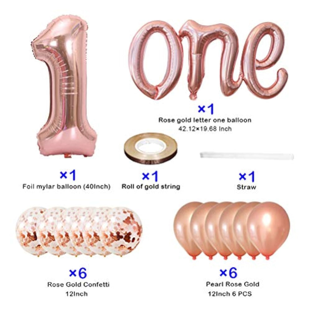 Celebrate your little one's special milestone with this elegant rose gold first birthday balloon kit, designed to make the day unforgettable. The set includes a giant 40-inch number 1 foil balloon, rose gold "one" letter balloons, along with matching rose gold latex and confetti balloons, all crafted from high-quality materials that are easy to inflate and self-seal without the need for tying. These stylish balloons add glitter and glamour to your girl's first birthday, creating a vibrant and picture-perfect atmosphere. Ideal for decorating any space, this kit brings a cheerful vibe to the party and makes for a fun and heartwarming memory you’ll cherish for years to come.