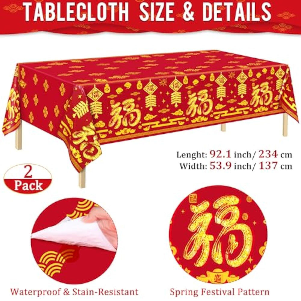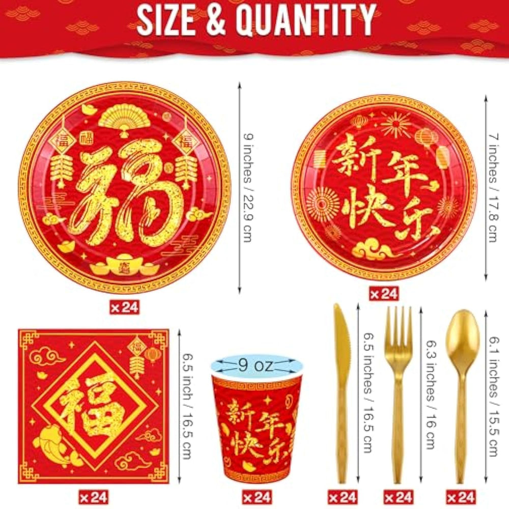 | Set-Of-170 Spring Festival Set: The Chinese New Year Party Tableware Set Includes A Variety Of Essential Items For Your Festivities. It Comprises 2 Spring Festival Tablecloths, 24 9-Inch Paper Plates, 24 7-Inch Paper Plates, 24 3-Ply Paper Napkins, 24 9-Ounce Paper Cups, And 24 Sets Of Plastic Spoons, Forks, And Knives In A Sophisticated Gold Color. In Total, This Chinese Spring Festival Dinnerware Set Consists Of 170 Exquisite Pieces, Providing All Your Tableware Needs Are Met. | | Exquisite Design: The Chinese New Year Party Tableware Set Is Infused With Elements That Capture The Essence Of The Chinese Spring Festival. The Vibrant Red Color, Synonymous With This Festive Occasion, Serves As The Foundational Backdrop, Complemented By Beautiful Golden Accents. Moreover, The Set Features Iconic Patterns Such As Ingots, Lanterns, Clouds, Fireworks, Fish, And The Auspicious Chinese Words, Capturing The Festive Atmosphere Of The Chinese New Year. | | Durable Materials: The Chinese New Year Party Tableware Set Is Made From High-Quality Plastic And Paper Materials. The Plastic Tablecloth Is Waterproof And Easy To Clean, Providing Convenience During Use. The Paper Plate Set Is Made From 300Gsm Paper Material, Offering A Clean Surface For Food. The Cutlery, Crafted From High-Quality Plastic, Exhibits Exceptional Strength And Durability, Providing A Reliable Dining Experience. | | Convenient To Use: The Chinese New Year Party Tableware Set Offers A Wide Range Of Products, Including Tablecloths, Paper Plates, Paper Cups, Napkins, And Plastic Cutlery, Providing All The Necessary Dining Supplies For Your Spring Festival Party. You Don'T Have To Spend Time And Effort Selecting And Coordinating These Items. Furthermore, Once The Celebrations Are Over, You Can Simply Discard The Used Tableware, Effortlessly Saving You Time And Energy On Cleaning. | | Extensive Applications: The Chinese New Year Party Tableware Set Is Designed To Accommodate A Wide Range Of Events, Including Chinese Spring Festival Dinners, Chinese New Year'S Feasts, And Gatherings During The Festive Season. Whether You'Re Hosting A Traditional Chinese New Year'S Eve Dinner Or Organizing A Casual Get-Together With Friends And Family During This Joyous Time, This Versatile Set Provides An Excellent Tableware Solution And Creating A Vibrant Atmosphere. | |