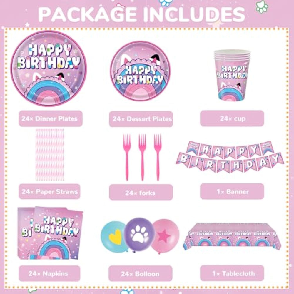 | Package Includes: You Will Receive Dollhouse Themed 24 Sets Of Cartoon Teacher Party Supplies, 24 9-Inch Plates, 24 7-Inch Plates, 24 6.5-Inch Napkins And 24 Plastic Forks, 24 Cups, 24 Straws, 24 Balloons, 1 Banner, 1Pcs 137*274Cm Tablecloth. 24 Guests. | | Durable Material: Dollhouse Themed Dinner Plates, Napkins And Forks Are Made Of High-Quality Materials, Non-Toxic And Tasteless, Heat-Resistant And Durable. The Patterns And Colors Are Beautifully Printed, Which Is A Good Party For Children'S Theme Atmosphere. | | Suitable For All Occasions You Can Use Our Dollhouse Party Supplies To Decorate Not Only Birthday Parties, But Also Your Theme Party, Kids Birthday, Baby Shower, Kids Room Decoration Friends Gatherings Or Family Gatherings. | | Save Time These Dollhouse Themed Birthday Party Decoration Sets Are Perfect For Your Party. Disposable Tableware And Party Tablecloths Can Save You The Trouble Of Cleaning Up After The Party, And You Can Spend More Time With Your Friends And Children At This Kids Party | |