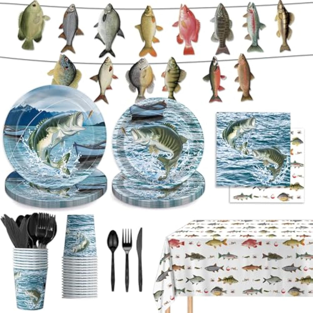 | Fishing Birthday Party Decorations: 24 Dinner Paper Plates (9 Inches), 24 Dessert Paper Plates (7 Inches), 24 Napkins, 24 Paper Cups (9 Oz), 24 Knives, 24 Forks, 24 Spoons, 1 Tablecloth (54 X 108 Inches), And 1 Banner; | | Gone Fishing Designs: This Series Of Party Supplies Is Designed With A Gone Fishing Theme. The Paper Plates Feature Boats, Fish, Fishing Lines, Bait, Trees, River Water, And Other Designs In Harmonious Colors, Creating A Great Fishing Party Atmosphere For You. | | Environmental Durable Party Tableware: The Disposable Paper Plates, Cups, And Napkins Are Made Of Thick Paper Material And Printed With Food-Grade, Water-Based Ink, Suitable For Food