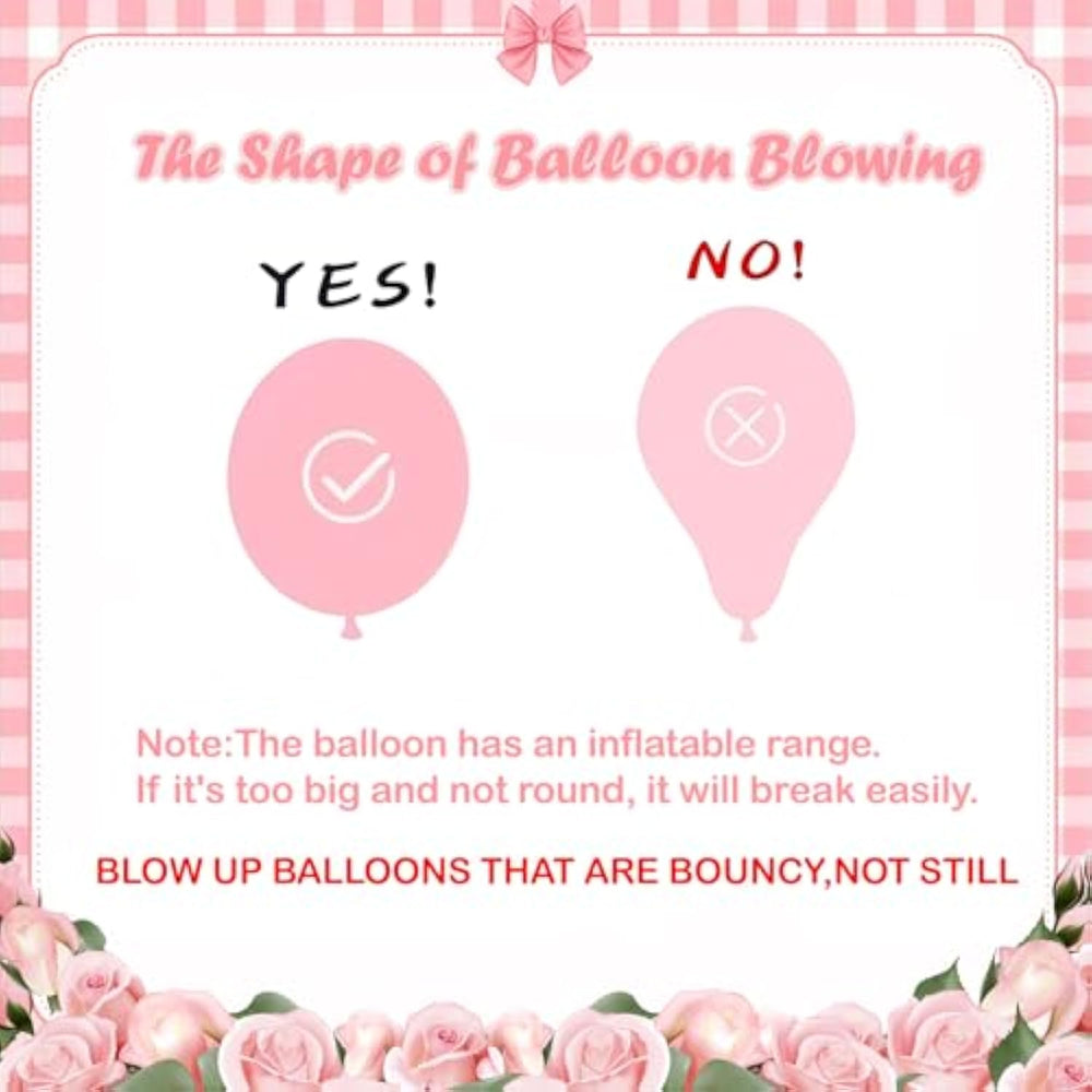 This 176-piece pink balloon garland kit includes 85 ten-inch balloons, 75 five-inch balloons in pink and white, 16 blue long balloons for bowtie designs, and essential accessories. Easy to assemble with included balloon tape and dot glue, it allows you to create stunning balloon arches effortlessly. Made from high-quality, non-toxic natural latex, each balloon is carefully selected for durability. Perfect for birthdays, baby showers, weddings, and various events, this pink balloon arch adds an elegant and memorable touch to any celebration.