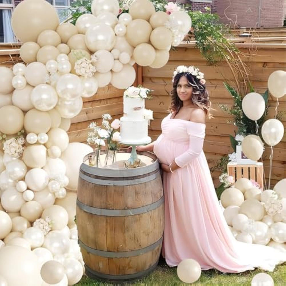 This 177-piece balloon kit includes a mix of pearl white balloons in 18", 10", and 5" sizes, along with 16 pink long balloons for creating bow accents. Made from durable, non-toxic latex and carefully quality-checked, these balloons are perfect for crafting elegant garlands or arches. The set also includes balloon tape and glue dots for easy assembly. Ideal for birthdays, weddings, baby showers, and other special occasions, this kit adds a stylish and memorable touch to any celebration.