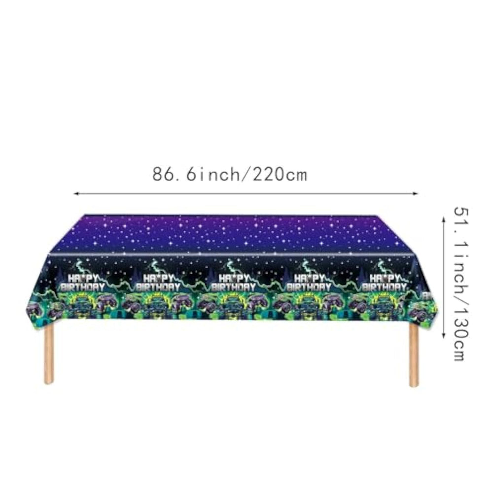 | ???Products Include :? 1 Monster Truck Background, 2 Banners (10 Pennants)?30 5-Inch Balloons (10 Black, 10 Purple, 10 Green), 35 10-Inch Balloons (10 Black, 10 Purple, 10 Green?5 Silver) ? 30 12-Inch Balloons (10 Black, 10 Purple, 10 Green) ?3 18-Inch Balloons (2 Black, 1 Green), 1 Monster Truck Tablecloth, 10 9-Inch Plates, 10 7-Inch Plates,20 Napkins ? 10 Forks , 1 Happy Birthday Cake Toppers, 12 Monster Truck Cupcake Toppers?2 Black And White Checkered Balloons, 2 Tire Balloons?1 Balloon Chain ?1 Roll Of Glue?1 Knotter?1 Straw | | ???About After-Sales:?If You Receive The Goods, If The Packaging Is Damaged Or The Product Is Missing, Please