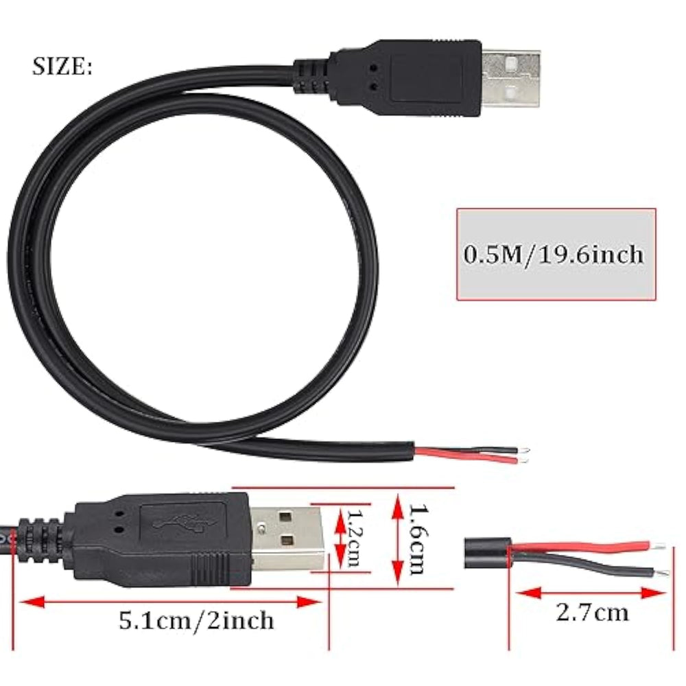 | [Main Parameter]:The Usb 2.0 Male Plug To 2Pin Bare Cable Is Usb 2.0 Type A Male Socket + 2 Pin 2 Wire Charge Cable Cord For Diy. The Usb 2.0 Male Pigtail Cable 18Awg, Total Length: 50 Cm/1.6Ft, Rated Voltage: 5V, Max 5A,Red Positive Pole, Black Negative Pole, Easy To Operate. Conductive Material: Copper. | | [Application Field]: This Usb 2.0 Female Pigtail Power Cable Has One End Of Usb2.0 A Female Socket And The Other End Of 2-Pin 2-Wire Bare Wire. It Is Used For Diy Any Device That Needs 5V Usb Charging. It Is Applicable To Power Cord Of Driving Recorder, Led Desk Lamp, Usb Fan, Small Appliance Light Belt, Power Adapter, Power Charging Stand, Usb Socket Panel, Circuit Board, Bedside Lamp, Low-Power Electrical Equipment Around Computer And Various Small Appliances. | | [High Quality]2 Pin 2 Wire 5V Usb 2.0 Diy Male Made Of Upgraded Wear-Resistant Materials That Can Be Bent At Will,With Tight Interface Connections That Are Not Easily Disconnected,Wear-Resistant Material The Upgraded Design Pure Copper Core Wire, Double Insulated Pvc Protection; Anti Riot Sunscreen, Anti-Oxidation, Anti-Aging, Wear Resistance, Which Has A Longer Service Life. | | [Easy To Use]:Usb Connector Replacement Cable With Good Compatibility,5V Cable Wire Diy Welding The End Of The Tail Fiber Cable Is Easy To Weld. And Diy Solder The Ends Of The Pigtail Cables Are Pre-Tinned Which Makes Them Very Easy To Solder. You Can Screw Wires Onto 5V Usb Power Supply Equipment Easily. Not Easy To Loose. | | [What Will You Get]: 2 *Black 18Awg Usb 2.0 Male Plug To 2Pin Bare Cable | |