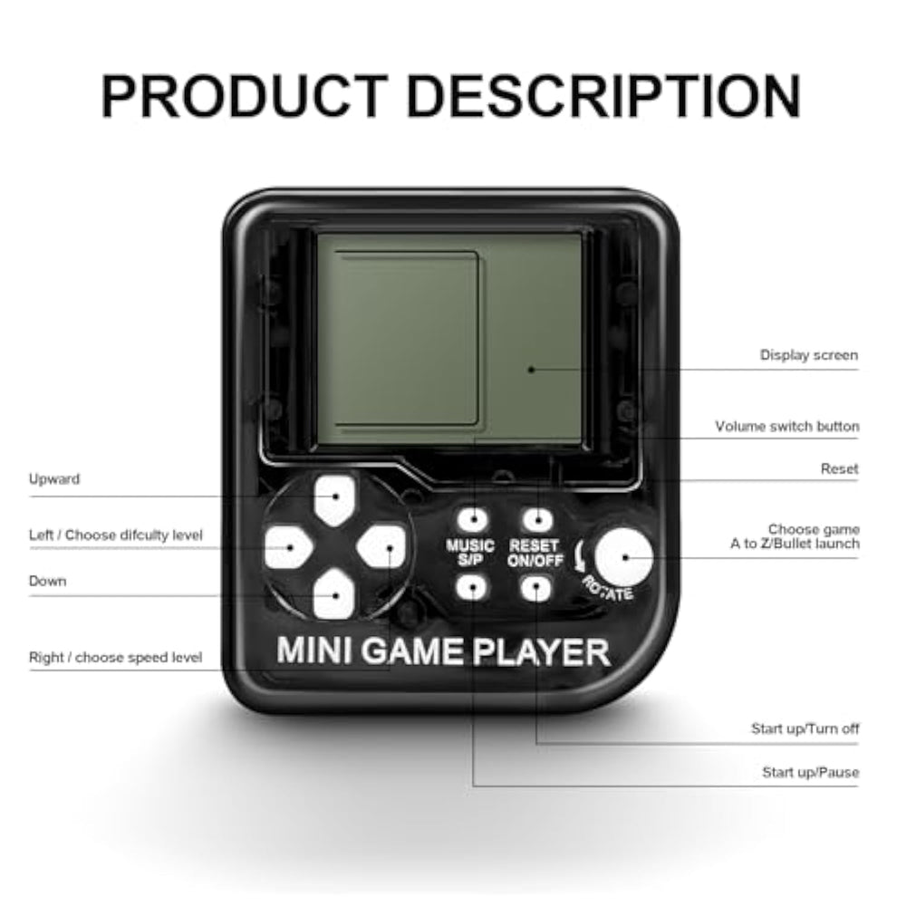 | ?? Arcade Video Game Keychain ? You Will Receive 18Pcs Mini Game Console Keychains, Perfect For Fans Of Video Games And As Party Favors.This Video Game Keychain Has 26 Classic Games, Each With 99 Different Difficulty Levels. Spending Some Time With Your Child Playing Games Together Can Also Promote The Relationship Between The Child And The Parents. | | ?? Video Games Party Favor ?? If You Are Searching For The Popular Party Favor Hot Toys For Your Child’S Birthday Party And Look No Further Than Some Boring Kid Toys Video Game Keychain Are The Perfect Choice For Your Family! This Set Will Bring Your Kids More Happiness And Fun! | | ? Kids Popular Party Supplies ?? 18Pcs Mini Video Game Console Keychains, The Perfect Addition To Any Video Game-Themed Birthday Party Or Event! A Hit With Kids And Adults Alike, These Keychains Make For Great Party Supplies And Can Be Used As Prizes Or Giveaways For Game Tournaments. | | ?? High Quality Materials??Our Portable Gamepad Keychain Housing Is Made Of High Quality Plastic Material, Which Is Strong And Durable And Does Not Break Easily. Whether You'Re Looking To Decorate Your Party Space Or Provide Your Guests With Fun And Unique Party Favors, These Video Game Keychains Are Just What You Need. | | ?? Portable Video Game Keychain ?? Mini Game Console Keychains Is Small And Exquisite, Which Is Very Convenient To Carry Around.They'Re The Perfect Size To Attach To Your Keys, Backpack, Or Even Your Phone Case,These Keychains Are Sure To Be A Hit With Gamers Of All Ages. | |