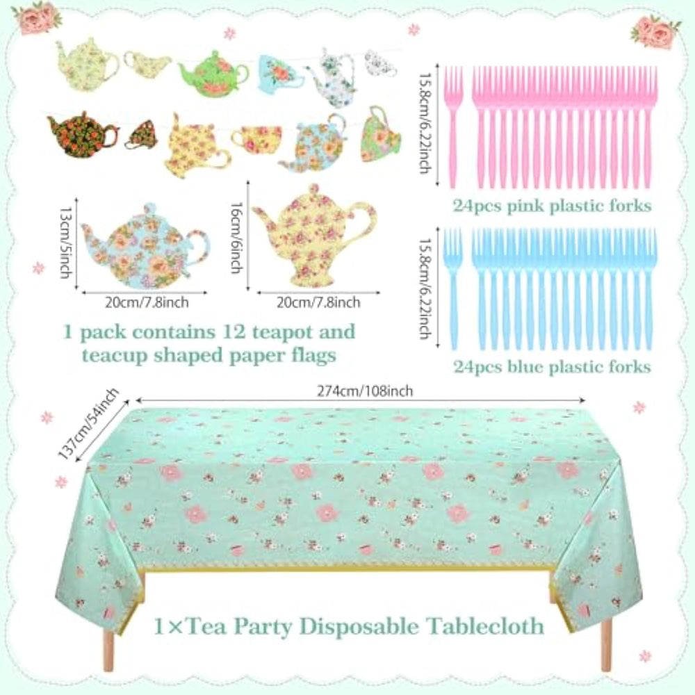 | Tea Theme Party Set: Includes 48 6 Inch Floral Paper Plates, 48 9Oz Tea Paper Cups With Handle, 48 Napkins, 48 Plastic Forks, 1 Party Banner, 1 About 108 X 54 Inch Tablecloth, 194 In Total, Complete Party Supplies To Meet Your Party Decoration And Use | | Floral Design With Gold Trim: Featuring A Spring Summer Floral Theme, Each Plate And Cup Showcases 6 Different Flower Patterns With Gold-Trim Edges, Adding A Touch Of Sophistication To Your Table Setting, Transform Your Gathering Into An Unforgettable Tea Floral Party | | Material: The Plates, Cups, And Tea Banner Are Made From Sturdy Paperboard, Providing Support And Durability, The Napkins Are Soft, Skin-Friendly, Highly Absorbent, The Tablecloth Is Crafted From Pe Material, All Items Are Disposable, Saving You Time On Cleanup | | Easy Use And Clean: 194 Tea Decoration Party Supplies, Meet 48 Guests For Dinner, Open The Packaging Can Be Applied, Disposable Design, Convenient After The Party Directly Packaging Garbage, No Need To Worry About Cleaning Up | | Multi-Purpose: Whether It'S A Bridal Shower, Birthday Party, Garden Tea Theme Party, Or Casual Gathering, This Functional Set Is Ideal For Event, The Elegant Design And Practical Functionality Make It For Hosts Who Want To Memory Their Guests | |