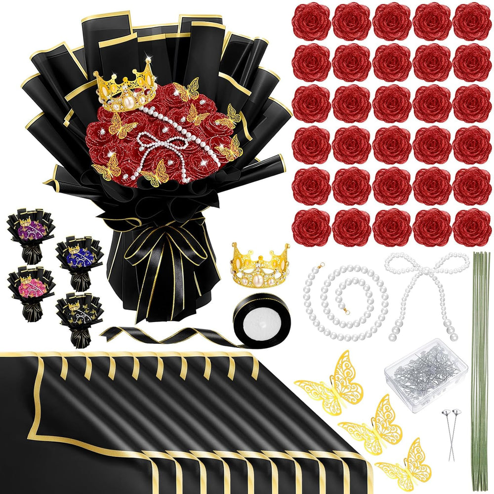 | Packing List: Fake Glitter Rose Bouquet Contains: 30 Sparkling Roses, 30 Flower Rods, 12 Butterfly Decorations, 1 Crown, 1 Pearl, 1 Bow; There Is Also An Array Of Other Tools For The Assembly, Including A Ribbon, 20 Pieces Of Wrapping Paper, And 100 Diamonds; The Quantity Is Sufficient And Abundant To Meet Your Needs | | Product Size: The Red Glitter Rose Bouquet Is 7 Cm In Diameter And Is Made Of Plastic And Delicate Sequins To Capture The Essence Of Romantic Charm; Its Lifelike Glitter Is Uplifting, Enveloping The Environment In A World Of Aesthetic Elegance And Captivating Enduring Beauty | | Diy Fun: Ignite Your Creative Spark With Our Diy Shinny Rose Bouquets - A Handmade Pleasure To Enjoy With Your Friends At Your Party(Suitable For People Aged 18 And Above.) | | Versatile Use: Our Diy Glitter Roses Bouquets Are Versatile And Perfect For Valentine, Birthdays, Engagements, Weddings, Anniversary And More, And Can Even Be Applied As A Beautiful Centerpiece To Add Elegance To Your Celebrations And Create Moments Of Joy, Elegance And Brilliance; It Is Normal To Drop Powder Upon Receipt | | A Variety Of Color Options: Artificial Glitter Flowers Bouquets Has A Variety Of Colors For You To Choose, Different Colors Have Different Representatives, You Can Choose According To Your Needs | |