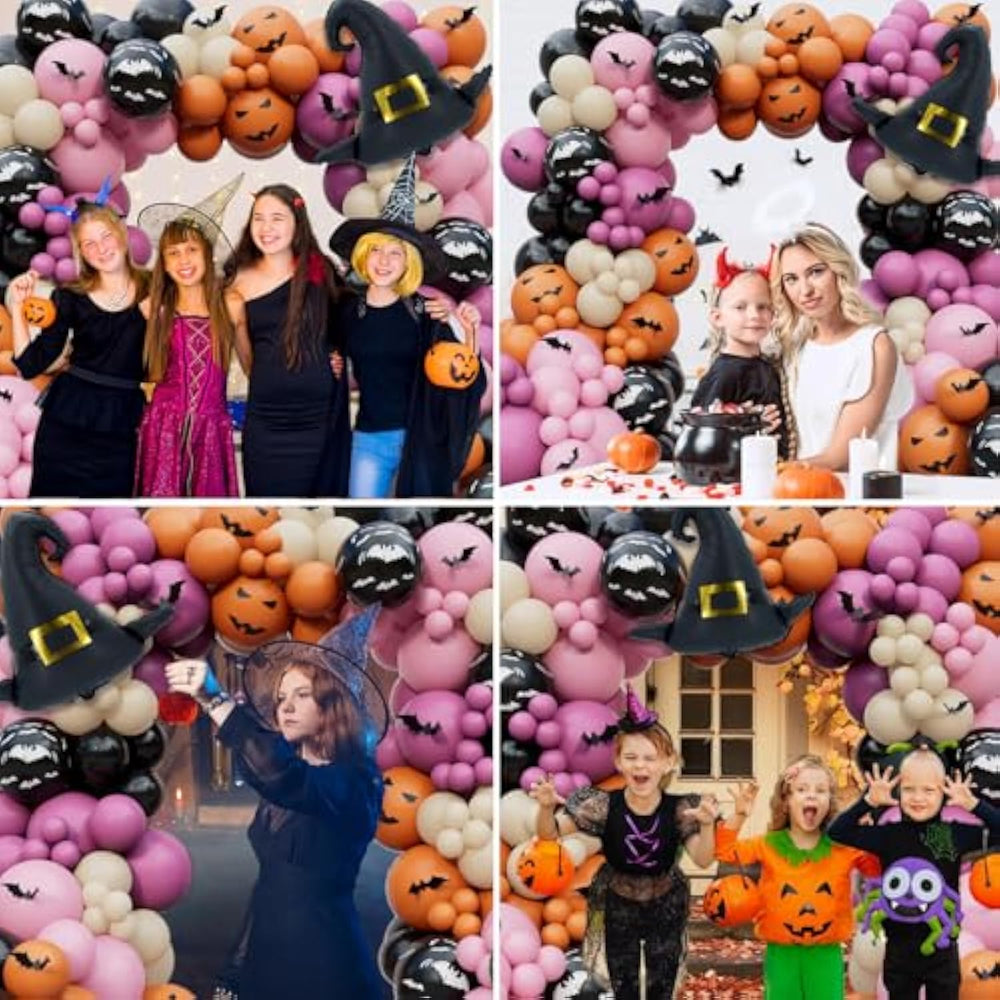The Halloween Balloon Garland Arch Kit is a complete set designed to bring both elegance and spookiness to your Halloween celebration. The kit includes pastel pink, retro pink, and black balloons in sizes 12" (5 pcs), 10" (15 pcs), and 5" (20 pcs); orange balloons in 12" (5 pcs), 10" (15 pcs), and 5" (10 pcs); white sand balloons in 10" (15 pcs) and 5" (10 pcs); printed balloons (12" × 14 pcs); 12 bat stickers; 3 foil balloons; and 3 balloon accessories for easy assembly. Crafted from high-quality natural latex, these balloons are durable and resistant to popping, making setup hassle-free. The kit comes with all necessary tools and attachments, allowing you to DIY your Halloween balloon arch exactly the way you want. Perfect for kids’ parties, adult gatherings, or any Halloween-themed event, this versatile kit helps you create a festive, eye-catching centerpiece. Elevate your Halloween decor and make your celebration unforgettable with this stylish and fun balloon garland kit.