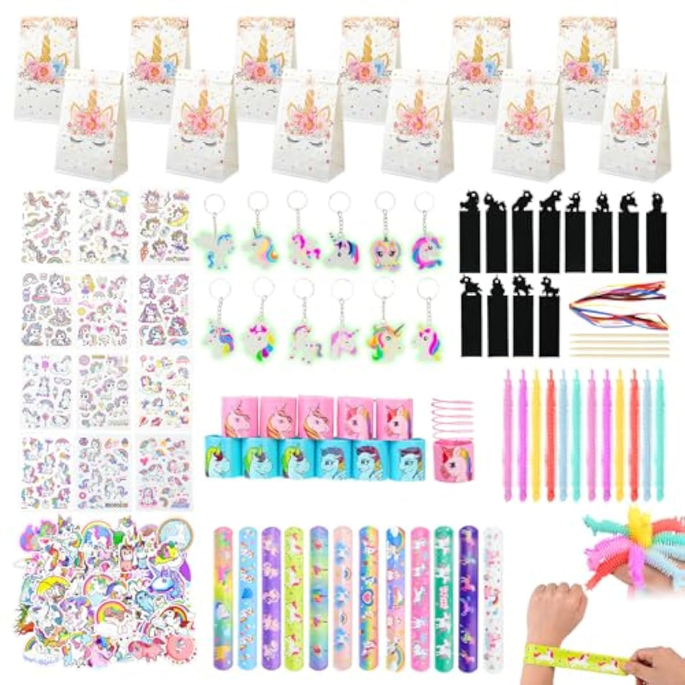 | Complete Set: 196Pcs Unicorn Party Favors, Make Your Child'S Party Unforgettable With This Delightful Party Favor Set Featuring Unicorn Themes. If You Are Looking For Magical And Mystical Unicorn Party Favors Then Do Not Miss This Set Of Favors. You Can Get 12 Unicorn Party Favor Bags And 12 Thanks Stickers, 12 Unicorn Scratch Bookmarks, 100 Cute Unicorn Stickers, 12 Unicorn Stretchy Strings, 12 Unicorn Keychains, 12 Slap Bracelet, 12 Mini Unicorn Plastic Spring Toy, 12 Unicorn Temporary Tattoos. These Party Favors Are Sure To Keep Boys And Girls Entertained During The Celebration | | Design For Party: These Exquisite Unicorn Party Favor Supplies Specially Designed For People Who Love Unicorn. This Set Of Party Favors Is Very Suitable For Kid Unicorn Theme Birthday Party.Includes Everything You Need To Delight Young Party-Goers | | Perfect For All Occasions: These Party Favors Are Suitable For Any Occasion, Such As Birthday Party Supplies, Classroom Prizes, Girl Party Favors, Valentine'S Day Gifts, Easter Party Favors, New Year Party Favors And Christmas Party Favors | | Idea Gift: Our Unicorn Set Of Party Favors Works As An Amazing Gift That Will Help Meet Kids' Fashion Needs While Also Nurturing Their Creative Skills. From Birthday Party Gifts To Classroom Rewards, Our Set Is A Perfect Choice, Children And Adults Will Love These Unicorn Party Favor Supplies | |