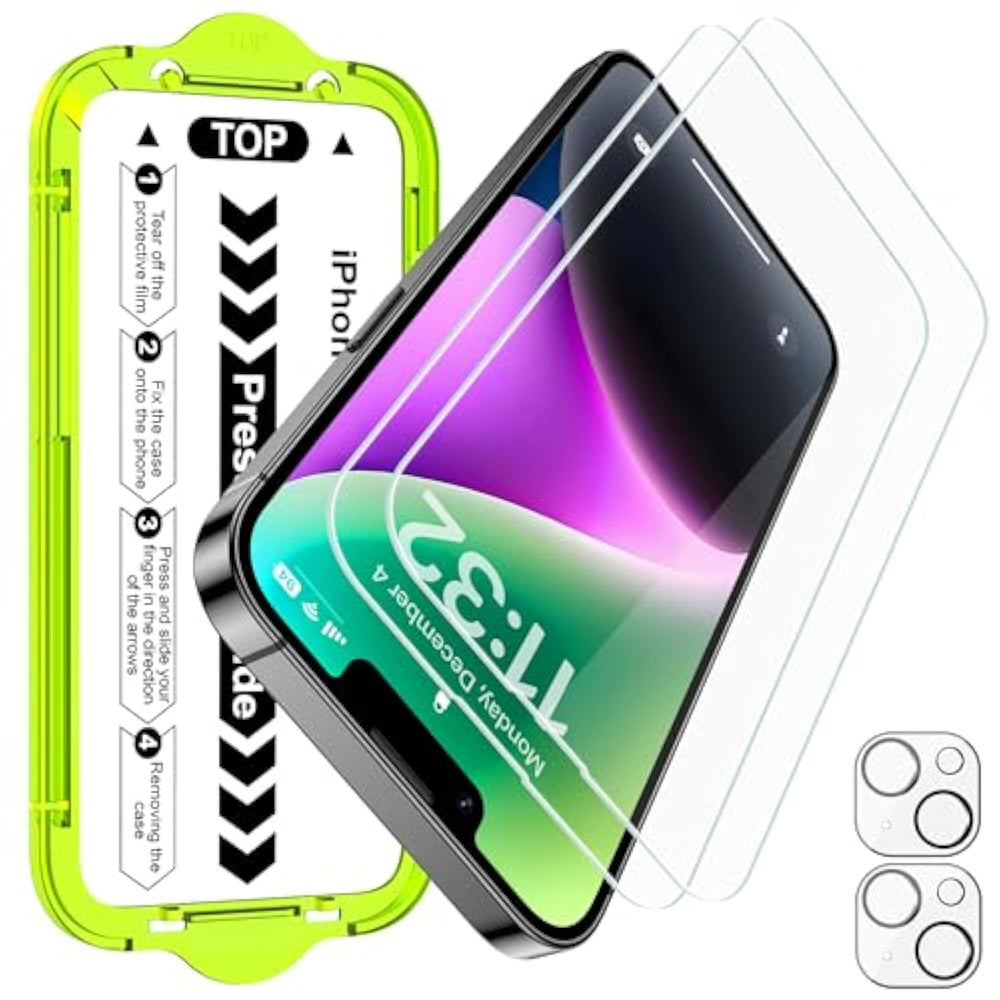 | Ultra Hd Clarity: Achieve 100% Light Transmission For A Vivid Iphone Viewing Experience, Ensuring Bright And Vibrant Image Quality. | | [Professional Design Extraordinary Protection] Tempered Glass Is Made Of 9H Hardness And Has Further Than 2.5D Round Edge To Protect Your Iphone Screen From Scratches, Daily Wear And Drops. The Camera Lens Screen Protector Effectively Protects The Raised Camera Cluster And Will Not Affect The Shot Image Quality. | | [Ultra-Thin Highly Responsive]Crafted From 100% Brand-New, Laser-Cut Tempered Glass With A Polished Finish. At Just 0.33Mm Thin, It Protects Your Screen Without Compromising Touch Sensitivity β Ensuring Smooth, Accurate Response For A Flawless User Experience. | | [Easy Installation With Frame] With The Unique Designed Positioning Frame, You Can Install The Screen Protector Accurately And Quickly. No Interfering With Any Kind Of Cellphone Case. Please Refer To The Video Before Installation If You Are The First Time To Install The Screen Protector. | | [