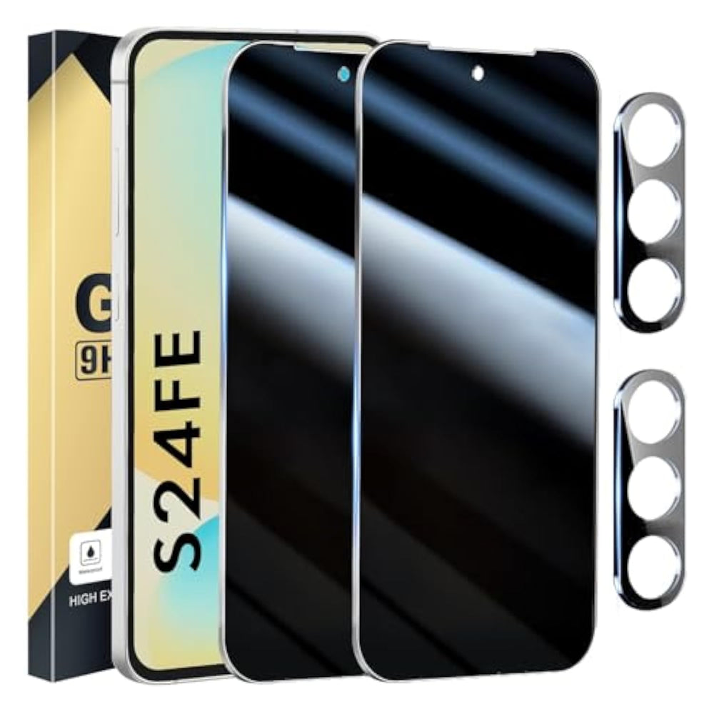 | Complete Privacy Protection: This 2+2 Pack Includes 2 Privacy Screen Protectors And 2 Camera Lens Tempered Glass For The Galaxy S24 Fe 5G, Ensuring Comprehensive Privacy And Security For Your Device | | Anti-Spy Technology: The Privacy Film Blocks Side Views, Anti -Peeping Angle 28 °, Safeguarding Your Sensitive Information From Prying Eyes | | High Clarity And Bubble-Free: Enjoy A Crystal-Clear Viewing Experience With This High-Quality Screen Protector That Applies Smoothly Without Any Bubbles Or Distortions | | Durable Tempered Glass: The Camera Lens Protectors Are Made Of Tempered Glass, Providing Robust Protection Against Scratches, Cracks, And Other Potential Damage | | Easy Installation: The Package Includes All Necessary Accessories For A Hassle-Free Installation Process, Ensuring A Perfect Fit For Your Galaxy S24 Fe 5G | |
