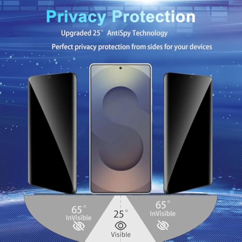 | Privacy Screen Protector: 2+2 Pack Galaxy S25 Ultra Privacy Screen Protector Provides A Privacy Barrier To Protect Sensitive Information From Prying Eyes | | Tempered Glass: It Also Includes 2 Pack Camera Lens Tempered Glass To Protect Your Camera Lens From Scratches | | High Clarity: This Privacy Screen Protector Has High Clarity And Is Bubble Free, So You Can Still Enjoy A Crystal Clear View | | Anti-Spy Protection: This Product Provides Anti-Spy Protection, So You Can Use Your Phone With Confidence | | Compatibility: This Privacy Screen Protector Is Compatible With S25 Ultra 5G Galaxy S25 Ultra.If You Have Questions About Installation, Please Watch Our Video Tutorial First, And Then Operate After Watching | |