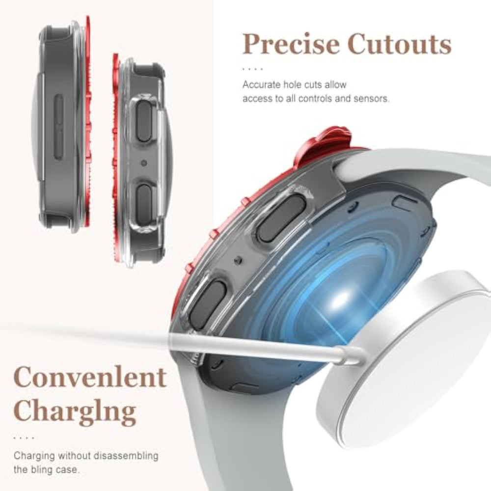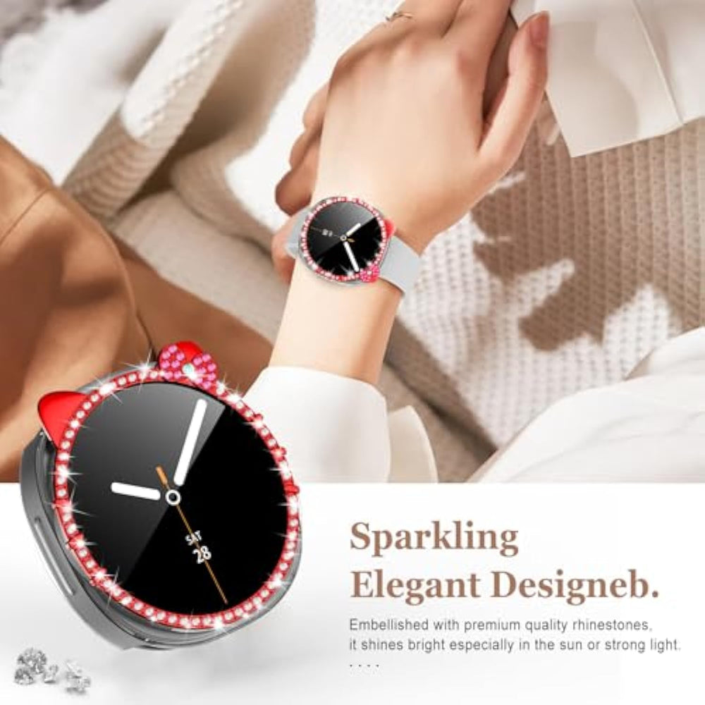 | [Compatible Model]: Only Compatible With Samsung Galaxy Watch 8 40Mm.Please Confirm Your Watch Size Carefully Before Purchasing! | | [Meticulous Protection]: This Galaxy Watch 8 40Mm Case Is Made Of High-Quality Pc Material. Its Hardness Can Protect Your Watch From Scratches, Collisions, And Falls. With A High-Definition Tempered Glass Protective Film, It Can Effectively Prevent The Intrusion Of Dust And Water Mist. | | [Luxurious Diamond Process]: Our Hard Pc Cover Is Surrounded By Bling Diamonds,Which Are Firmly Set And Will Not Fall Off, Adding A Sense Of Luxury To Your Watch.The Top Of The Case Decorated With Cute Cat Ears And A Bow Inlaid With Pink Rhinestones.Looks More Lovely And Charming. | | [Easy To Install]: The Glitter Rhinestone Protective Cover And Screen Protector Both Are Easy To Install And Remove Without Removing Your Galaxy Watch Band.It Is A Perfect Gift For Your Wife And Daughter On Valentine'S Day, Children'S Day, And Birthday. | | [Package Includes]: 2 Cases And 2 Screen Protectors For Your Galaxy Watch.If You Experience Any Issues Of Our Product,