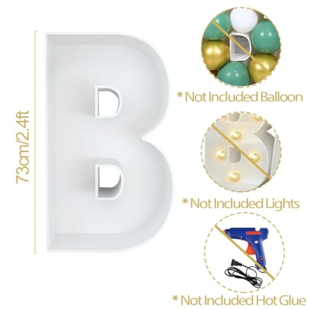 Create a standout party display with this 2.4FT DIY Foam Board "BABY" Marquee Letter Kit, perfect for baby showers, gender reveals, or birthdays. Each pre-cut letter frame is easy to assemble in about 15 minutes using the included instructions—just pre-position before gluing for best results. Fill the letters with balloons, flowers, or lights to match your theme and add a personal touch. Made from sturdy 0.2" thick foam board, these marquee letters are a fun and creative way to light up any celebration for a baby boy or girl!
