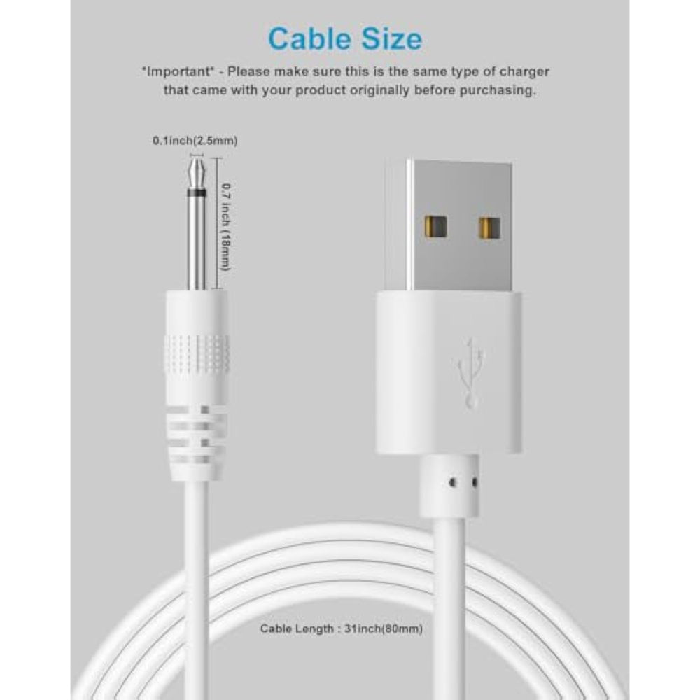 | Compatibility?Widely Compatible With 2.5Mm Massagers And Toy Dc To Usb Ports, Cable Length Is 2.7Ft/82Cm, Dc Head Length Is 0.68 Inches/17Mm, And Dc Head Diameter Is 0.1 Inches/2.5Mm. Please Measure Your Cable Head Before Placing An Order To Make Sure The Plug Size Is Correct! | | Fast Charging: Built-In Advanced Chip, Fast Charging Speed Provides High-Speed Charging For Compatible Devices. | | High Quality: This Dc Charger Cable Is Made Of Pure Copper Core, Which Is More Durable And Safer | | Easy To Use: Can Be Used At Home, In The Office Or On The Move, Anywhere You Can Access A Usb Socket To Charge Your Device, Such As Laptop/Pc, Wall Charger, Car Charger, Mobile Power Supply, Etc | |
