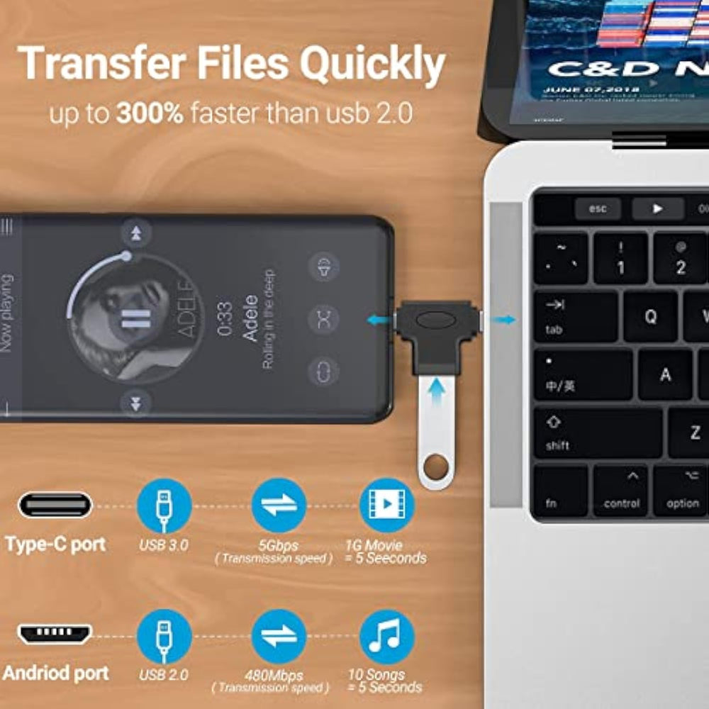 | 2 In 1 Usb 3.0 Female To Micro Usb And Type C Male Adapter Adapts An Usb Male Cable To Fit Into A Micro Usb And Type C Port On A Smartphone, Laptop, Camcorder, Camera, Or Tablet. | | Multifunction Usb Otg Adapter: Micro Usb 3.0 , Usb 3.0(Usb-A) And Usb 3.1 Type C (Usb-C) On-The-Go (Otg) Adapter Transform Usb Otg Enabled Smartphones And Tablets With Micro Usb Port Into A Host For Connecting Usb Peripherals. The Usb To Type C Adapter Supports The Newest Usb 3.1 Type-C Of Phones, Notebook And Macbook Port. | | Compact, Lightweight And Portable, Easy To Carry Out. Plug And Unplug Easily Without Checking For The Connector Orientation. | | Reversible Design Make It Can Plug And Unplug Easily Without Checking For The Connector Orientation. | | Portable Usb Otg Adapter Allows Your Device To Act As A Host For Other Usb Devices Like Keyboards, Mice, Digital Camera, Usb Flash Drive, External Storage And Other Usb Devices Keyboard, Game Controller, Sd/Tf Card Reader, And More Periherals. Multi Performace Converter Devices Backwards Compatible With Usb 3.0/ 2.0/ 1.1 | |