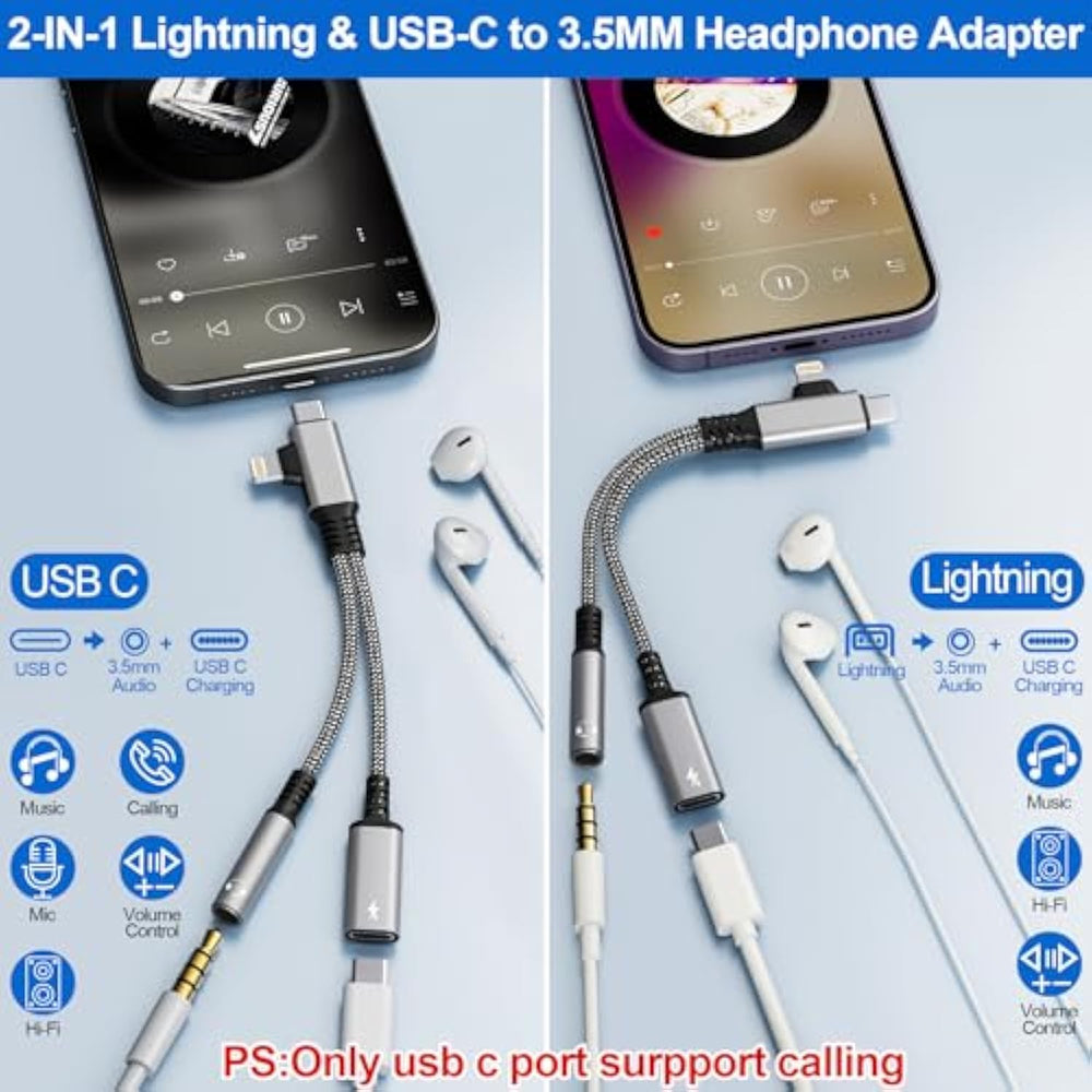 | Wide Compatibility - This Lightning Charger Splitter Is Compatible With Lightning, Compatible With Iphone 16/15/14/14 Pro/14 Pro Max/13/13 Pro/13 Pro Max/12/12 Pro/12 Pro Max/11/11 Pro/11 Pro Max/Xs/Xs Max/Xr/8/8 Plus/X/7/7 Plus, Etc., For Samsung S23 / S22 / S21 / S20 / S20+ / S20 Ultra / S20 Z Flip / S10 / S10+ / Note10, Google Pixel 4 / 4 Xl / 3 / 3 Xl / 2 / 2 Xl, I-Pad Pro, Sony Xz3, Huawei P40 / P30 Pro / P20 /Matepad Pro 5G / Mate Rs / 20X, Lg Smartphones With Usb C Ports. | | Charging + Listening- The 3.5 Mm To Lightning Adapter Allows You To Quickly Charge Your Device While Listening To Music, Playing Games, Watching Videos, And The Charging Interface Is Usb C Interface. Plug And Play, No Driver Required. Note:Only Usb C Port To 3.55Mm Audio Port Surpport