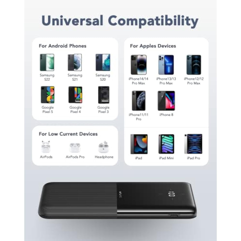 | ?Usb-C Output?3 Ports (1 Usb-C, 2 Usb) Deliver 5V 2.4A. Charge On-The-Go Or At Home With 2 Pack 10000Mah Battery Packs. | | ?Sleek Portability?Measuring 5.63" * 2.64" * 0.62" And 8.04 Oz, Our Power Bank Combines Compactness With Potency. Ergonomic Design Ensures Comfort And A Firm Grip, Perfect For Your On-The-Go Life. | | ?Enhanced Grip?3D Textured Surface Offers Tactile Feedback And Secure Grip, Preventing Slips And Device Mishaps. | | ?Air-Safe Travel Companion?Airline Approved And Designed With A Reliable Li-Polymer Cell, Our Power Bank S Enhanced Safety Compared To Li-Ion Alternatives, It'S Sleek, Light, And Reliable. Stay Powered During Air Travel With Peace Of Mind. | | ?What You Get?Product Package: 2 X Power Bank 10000Mah, 1 X User Manual, 2 X Usb A To Usb C Cable. If You Have Any Questions Or Problems, Please Feel Free To