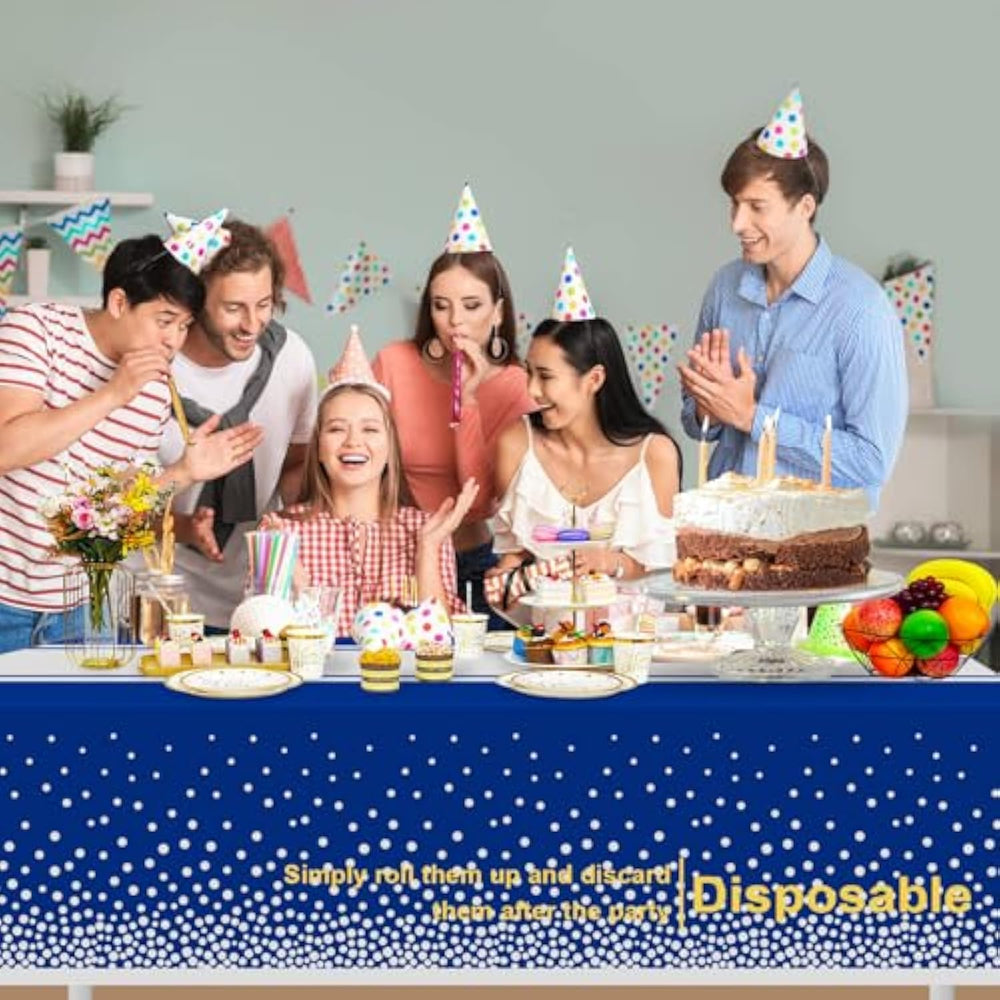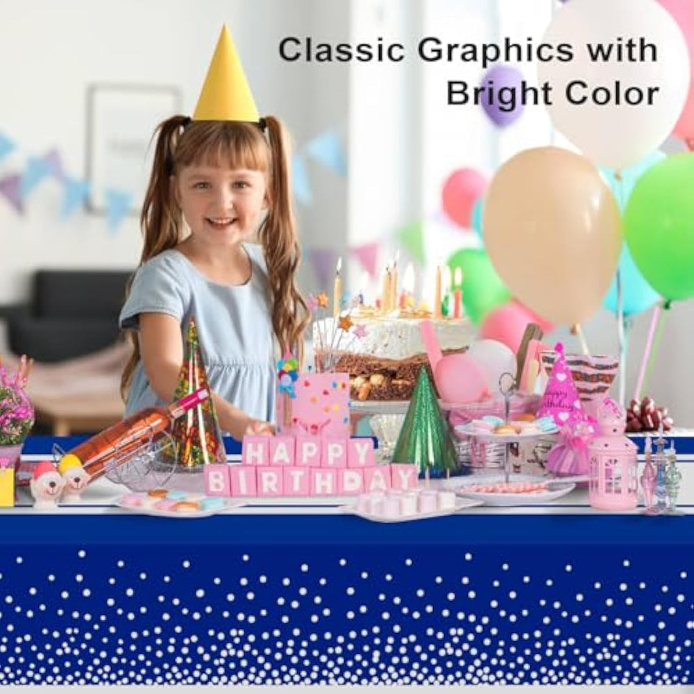 | ?Waterproof And Stain Resistant?The Blue And Silver Tablecloth Is Made Of Plastic Material, It Is Waterproof And Stain Resistant, It Can Protect The Table And Its Surface From Spills, Debris And Stains, Making It Easy To Clean Up After The Party. If You'Re Tired Of Washing All Your Tablecloths, Blue And Silver Plastic Table Cloths For Parties Disposable Are A Great Solution! Simply Roll Them Up And Discard Them After The Party. Save Yourself The Hassle Of Clearing The Table And Allow You To Spend More Time Enjoying The Party With Your Family And Friends | | ?Durable Plastic Tablecloths?Our Blue Tablecloth With Silver Printed Table Runner Is Made Of Premium Durable Pe Material, Creating A Waterproof Barrier That Keeps Your Table Fully Protected At All Times. The Disposable Blue And Silver Tablecloth Measures 54 X 108 Inches, Covers An 8-Foot Table, And Can Be Cut To Size. Our Package Includes A 2-Pcs Of Blue And Silver Tablecloths, And You'Ll Have Enough Covers For Even Big Events Or Multiple Occasions | | ?Multiple Uses?Blue With Silver Dot And Silver Printed Table Runner Tablecloths Can Create A Party Atmosphere And Are Perfect For Celebrations Like Birthday Party. Suitable For Indoor And Outdoor Use. Ideal For Parties, Banquets, Birthdays, Baby Shower, Picnics, Weddings, Graduation, Valentine'S Day Decorations, Thanksgiving Dinners, Christmas Celebrations, Etc. Not Only Suitable For Parties, But Suitable For Decorating! Plus, Blue And Silver Table Cloths For Parties Can Also Be Used As Decorative Background Banners Or Graffiti Table Covers To Keep Your Table Clean | | ?Enjoy Your Party?The Blue And Silver Tablecloth Features A Blue And Silver Theme To Add A Fun Pop Of Color To Every Of Your Gatherings. Impress Your Guests Throughout The Party. When The Party Is Over, You Can Spend More Time With Family Or Friends And Less Time Cleaning Up. A Blue And Silver Tablecloth Is A Beautiful Addition To Any Party Or Event | | ?Decorative Tablecloths?Turn Any Boring Table Into The Centerpiece Of Your Next Party, Family Gathering Or Event Venue With These Gorgeous Tablecloths. These Blue And Silver Tablecloths Are An Elegant And Practical Combination That Creates A Beautiful And Enjoyable Atmosphere For Your Family And Friends | |