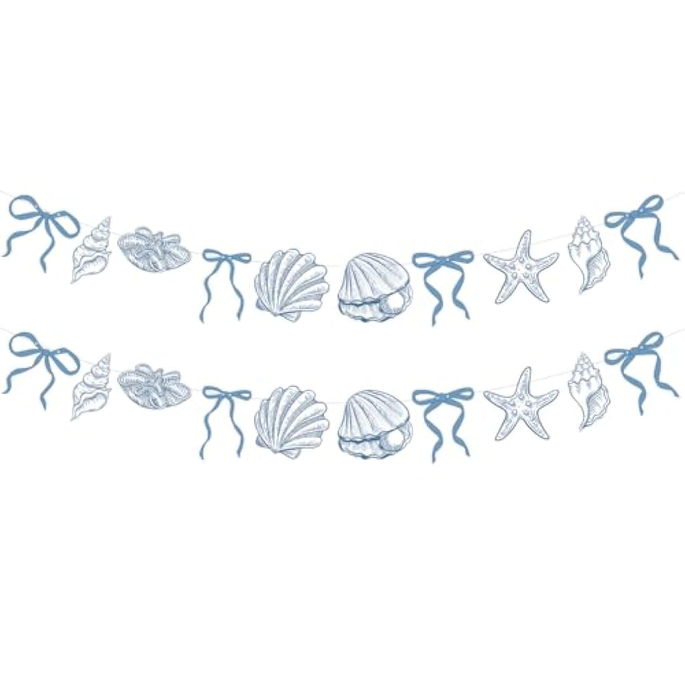 | Bow Seashell Party Decor: This Bow Sea Themed Party Decorations Decorated With Starfish Shells, With A Bow Design, The Overall Blue Color, Full Of Seaside Atmosphere, Is A Good Home Decoration, Whether It Is A Coast-Themed Party, Mermaid Birthday Party Decoration, Beach Wedding, This Ocean-Themed Decoration Can Create A Relaxed And Happy Atmosphere | | Satisfy Your Use Needs: You Will Receive 2 Pcs Blue Bow Beach Garland, Each 6.56Ft/ 2M Long, This Blue Bow And Sea Element Banner Is Suitable For All Occasions That Need To Create A Relaxed, Cheerful And Natural Atmosphere, Especially For Those Related To The Sea Or Summer Activities, Adding To The Fun Atmosphere Of Summer | | Summer Decor: Blue Coquette Birthday Decorations Made Of Seashells, Starfish And Bows, This Starfish Wreath Combines Summer Elements For An Undersea Party Theme, A Beach Bachelorette Party, A Coastal Birthday Celebration, Or A Summer Beachfront Vibe Hanging On A Door | | Easy To Assemble: Just Untangle The String, Thread The Accessories, And Hang Them As Needed, You Have To String Them Yourself; A Single 6.56Ft / 2M Long, Light Weight, Easy To Hang Anywhere You Like, With Summer Theme Decoration Blend, Add A Summer Feeling To Your Home | | Multiple Functions: Bow Starfish And Seashell Garland For Beach Themed Parties, Summer Celebrations, Seaside Weddings, School Organized Sea Themed Days Or Other Related Events, This Decoration As A Shooting Background, Can Also Be Hung Or Wrapped Around The Mantel, Curtains, Balconies, Walls, Balconies | |