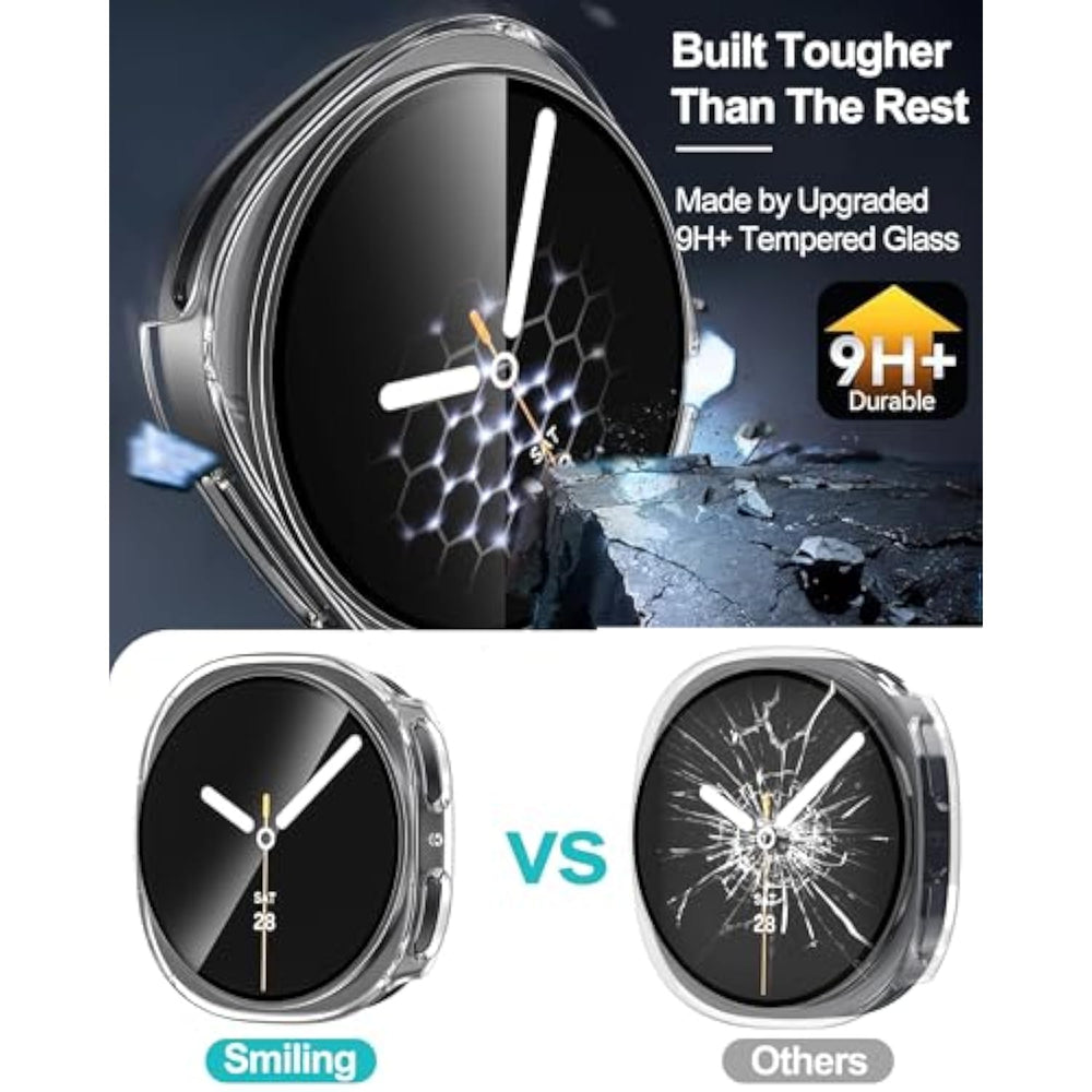 | [Compatible Models]: Only Compatible With Samsung Galaxy Watch 8 40Mm. Please Check Your Watch’S Back For The Correct Size. | | [2-In-1 Full Protection]: Durable Hard Pc Case With Built-In 9H+ Hd Clear Tempered Glass Screen Protector, All Around Protects Your Galaxy Watch 8 40Mm From Scratch, Bumps, And Accidental Drops. | | [Smooth Install, Gentle Edges]: Easy To Install And Remove. Rounded Edges Ensure Your Watch Stays Scratch-Free During Swaps. | | [Easy To Take On Off]: With Precise Cutouts For Functional Buttons And Ports, You Can Easily Snap On And Take Off The Case. Do Not Affect The Band Insertion Or Watch Charging. | | [Package Include]: 2-Pack Transparent Screen Protector Case For Samsung Galaxy Watch 8 40Mm , 1 Pack Of Small Soft Cloth. | |