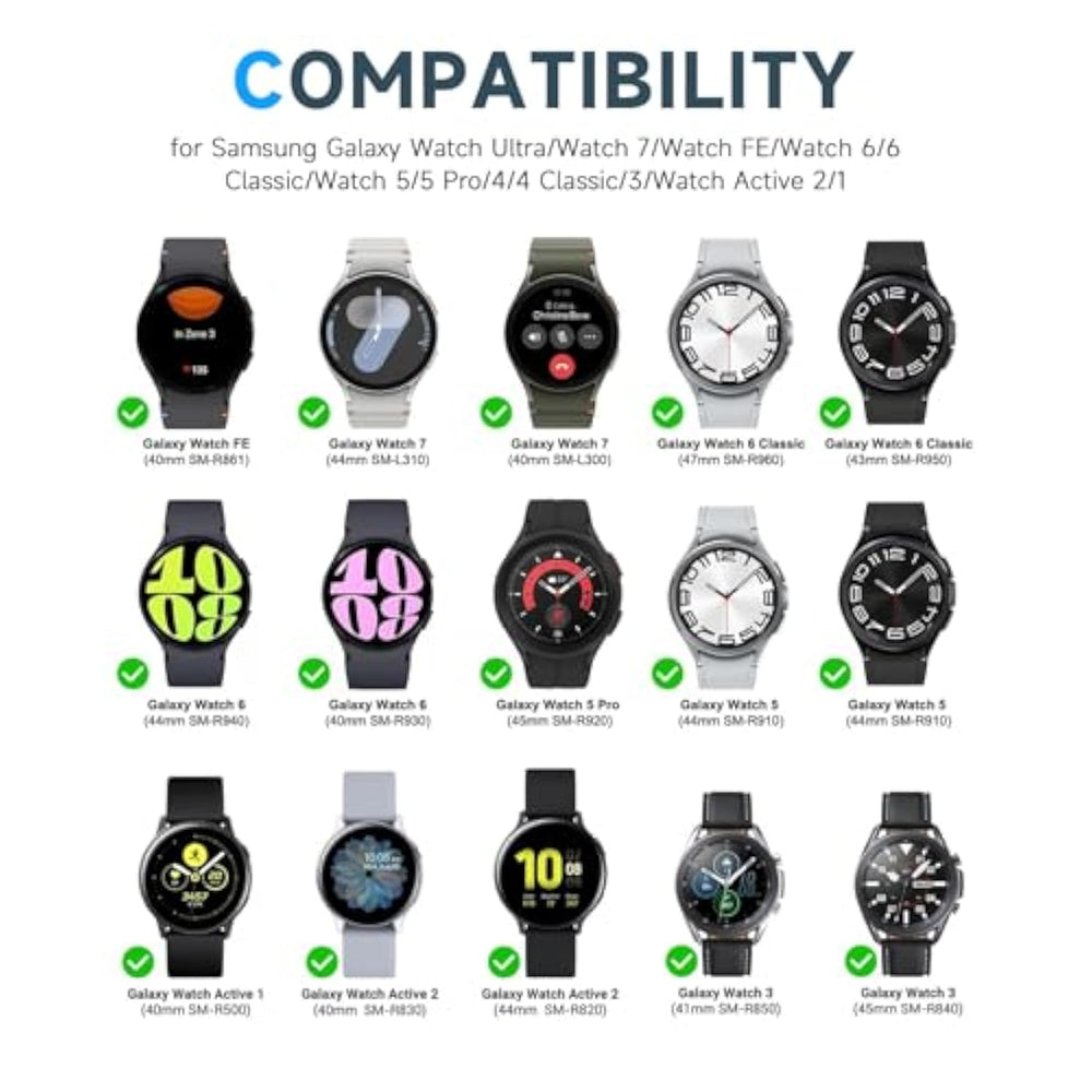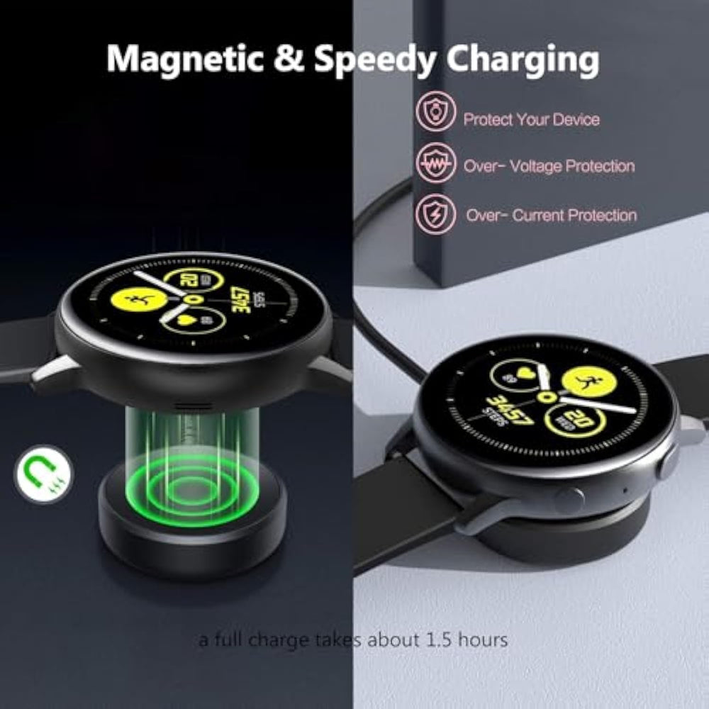 | Widely Compatibility: This Watch Charger Is For Galaxy 7 Ultra/6/6 Classic, Watch Ultra/Watch Fe, Watch 5/Galaxy Watch 5 Pro, Galaxy Watch 4/3/Active2/Active. [ Galaxy Watch 5 Pro 45Mm/Galaxy Watch 5 40Mm/44Mm,Galaxy Watch 4 (40Mm Sm-R860, 44Mm Sm-R870/Sm-875),Galaxy Watch 4 Classic (42Mm Sm-R880,46Mm Sm-R890/Sm-R895),Galaxy Watch 3 Sm-R850 (41Mm), Galaxy Watch 3 Sm-R840 (45Mm),Galaxy Watch Active 1 Sm-R500 (40Mm),Galaxy Watch Active 2 Sm-R830 (40Mm),Galaxy Watch Active 2 Sm-R820 (44Mm) | | 2 Pack Usb C Charger, 2 Pack Usb C Cable, Interface: Usb Type-C | | Color: Black | | The New Wireless Watch Charger Can Already Provide You With Usb-C Fast Charging Quickly. Lay Your Galaxy Watch Flat. The Charger Will Use Magnetic Force To Fix It In The Correct Position, And Then Leave The Rest To The Charger To Charge Your Watch Quickly | | The Fast Charging Infrastructure Is Equipped With Pd Charging Blocks, Which Can Reach 45% Of The Battery In Just 30 Minutes | |