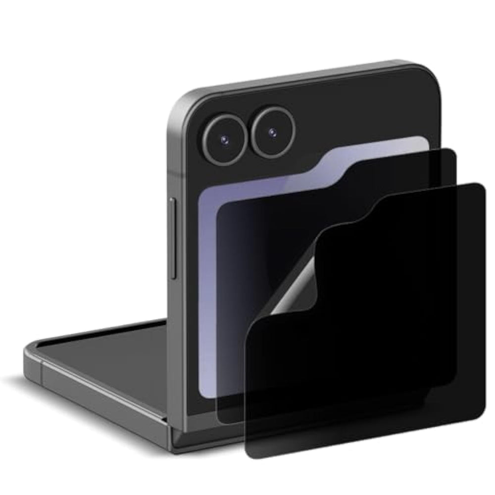 | ?2 Pack Compatible Device?Exclusively Designed For Galaxy Z Flip 7 Fe, Comes With 2 Pack Front Privacy Screen Protetor. *Please Check Your Device Model Before Purchasing. | | ?Advanced 25° Anti-Spying?Stay Secure Wherever You Go. The Upgraded 25° Anti-Spying Filter Ensures Your Screen Remains Visible Only To You While Keeping Your Sensitive Information Hidden From Prying Eyes In Elevators, On Public Transit, And In Busy Spaces. | | ?Precise Touch Sensitivity?Crafted For Flawless Performance, This Slim Screen Protector Maintains High Touch Accuracy And Quick Response Times. Whether You’Re Browsing, Gaming, Or Typing, You’Ll Experience Smooth, Precise Interactions That Feel As Natural As Using Your Device’S Bare Screen. | | ?Advanced Self-Healing Technology?Our Epu+Pet Material Features A Cutting-Edge Self-Healing Layer That Keeps Your Screen Protector Looking Pristine By Automati