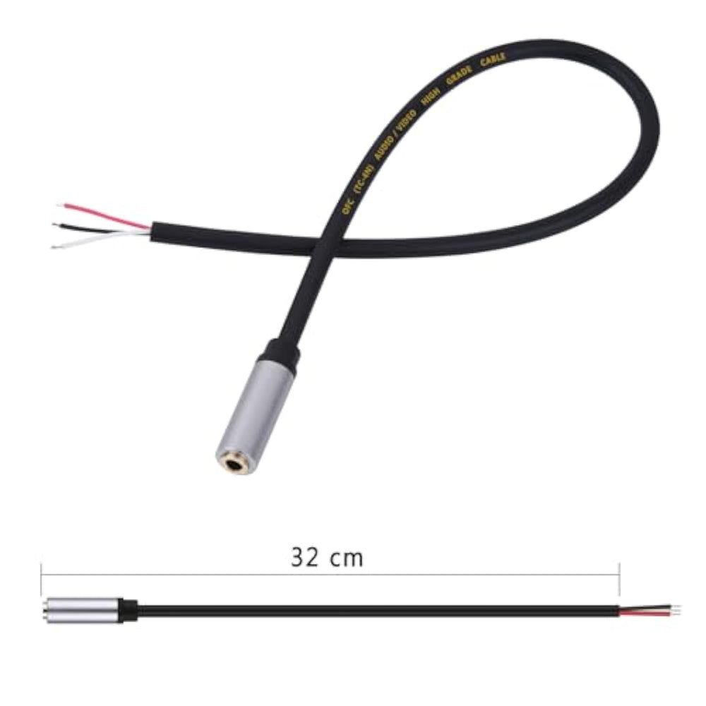 | Perfect Replacement Audio 3.5Mm Female Jack Connector To Bare Wire Audio Cable For Worn-Out Or Broken Headphone Headset Earphone Speakers Cable Repair. | | Wiring Diagram: Pin 1 - Red Wire Is The Left Channel; Pin 2 - White Wire Is The Right Channel; Pin 3 - Black Wire Is Ground. | | Easy To Handle, You Really Don'T Have To Be A Professional To Do This. Connect The Corresponding Bare Wires Together, Wrap And Seal The Bare Wire With Insulating Tapes. | | Cable Length: 32Cm/12.5 Inch. | | Package: 2-Pack 3.5Mm Stereo 3 Pole Female Jack Connector Replacement Audio Cable. | |