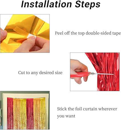 This set includes two metallic tinsel curtains, each measuring 2.2 x 3.3 feet, providing generous coverage for tables, doorways, or photo backdrops. Made from durable foil tinsel, they offer shimmering color and texture that enhance any fall or Thanksgiving celebration. Featuring a warm palette of orange, yellow, and red, they capture the essence of autumn and create a festive, inviting atmosphere. The curtains come with built-in adhesive backing for easy setup and clean removal, making decoration quick and effortless for parties, dinners, or cozy seasonal displays.