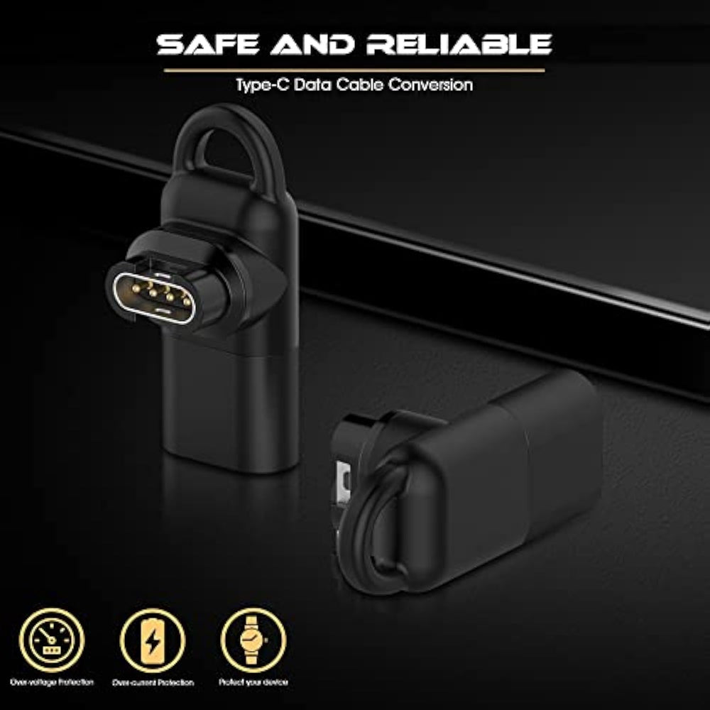 | Compatibility: The Charger Port Male Adapter Compatible With Garmin Fenix 8/8S/8X/,Fenix7/7S/7X Pro, Fenix 6/6S/6X/Baro, Fenix 5S/5S Plus/5/5 Plus/5X/5X Plus,Instinct 2/2S/Tide/Tactical, Vivoactive 4/4S/3/3?Epix 2?Venu 2 Plus/Sq/2/2S/, Vivomove Sport/3/3S, Enduro, Forerunner 965/955/945 Lte/745/945/935/245/245M/45/45S/645/645M, Approach S62, Tactix Delta, Venu Sq 3/2/2S, Swim 2, Move Luxe/Style, Approach S60, D2 Charlie/Delta, Quatix 5/Sapphire, Approach X10 And More. | | Porable: An Ideal Solution To Charge And Sync Garmin Watchs By A Usb-C Cable, Saving The Trouble Of Carrying Extra Cable Around. Enables Your Garmin Smart Watchs To Connect A Usb-C Cable. Minimum Design, No Additional Drivers Or Installation Required. Net Weight (One Piece): 0.14Oz (4G) | | User Friendly Design: 1. The Type-C To Smart Watch Charger Connector Part With An L Shaped Design Is Comfortable To Charge Your Watch On Desk Or Flat Anywhere. 2. The Adapter Can Be Carried And Fixed On Your Cable With The Anti-Lost Strap. | | Durable Premium Quality: Durable High-Quality Tpu Material, Aluminum Alloy And Copper Wire, Over- Voltage And Over - Current Protection Ensures Stable Current Transmission, Which Assures Safe Of The Charge And The Excellent Charging Experience For Your Smart Watch. | | Package Included: Adaptors*2, Anti-Lost Strap*2. | |