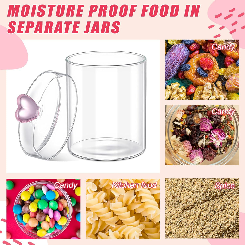 | Kitchen Storage Jars: This Set Includes 2 Glass Storage Jars Adorned With A Delightful Heart Shaped Handle; Each Jar Features A Matching Glass Lid To Ensure Your Ingredients Are Stored In Style; Ideal For Preserving A Variety Of Ingredients, They Offer Both Functionality And Aesthetic Appeal | | Cute Heart Design: Add A Touch Of Elegance To Your Kitchen With These Charming Jars; The Heart Embellishment Not Only Brightens Up Your Space But Also Enhances Your Kitchen Decor, Making Daily Use A More Delightful Experience | | Durable And Reliable: Crafted From Quality Borosilicate Glass, These Heart Jars Are Lighter, More Heat-Resistant, And Stronger Than Ordinary Glass; The Matching Sealed Lids Ensure Your Food Stays Fresh And Hygienic For Long-Term Storage, Providing Peace Of Mind With Every Use | | Generous Capacity And Convenient Size: Each Jar Measures Approximately 6.5 X 3.9 Inches (16.5 X 10 Cm) With A 30-Ounce Capacity; Ideal For Storing A Range Of Items Such As Spices, Cookies, Coffee Beans, Dry Goods, Candies, And Tea; Their Compact Size Also Makes Them Ideal For Travel, Fitting Easily Into Picnic Baskets Or Travel Bags | | Versatile Use: Ideal For Various Occasions Like Birthdays, Weddings, And Bridal Showers, These Jars Help Keep Your Kitchen Tidy And Organized While Adding Festive Style; They Make A Thoughtful Housewarming Gift For Friends Or Family, Offering Both Practical Storage And Visual Enjoyment | |
