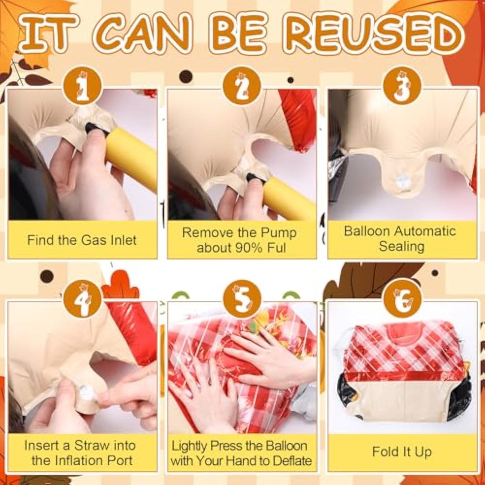 This set includes 2 giant scarecrow-shaped Thanksgiving foil balloons, each measuring about 47.2 x 21.7 inches before inflation, designed with vibrant colors and cute expressions to enhance your autumn harvest or Thanksgiving party. Made from durable aluminum foil with a glossy finish, these reusable balloons are easy to inflate and deflate, maintaining their festive look throughout your celebration. Perfect for decorating walls, windows, curtains, or using as photo props, they bring a cheerful and cozy fall atmosphere to any event, making your gathering more memorable and fun.