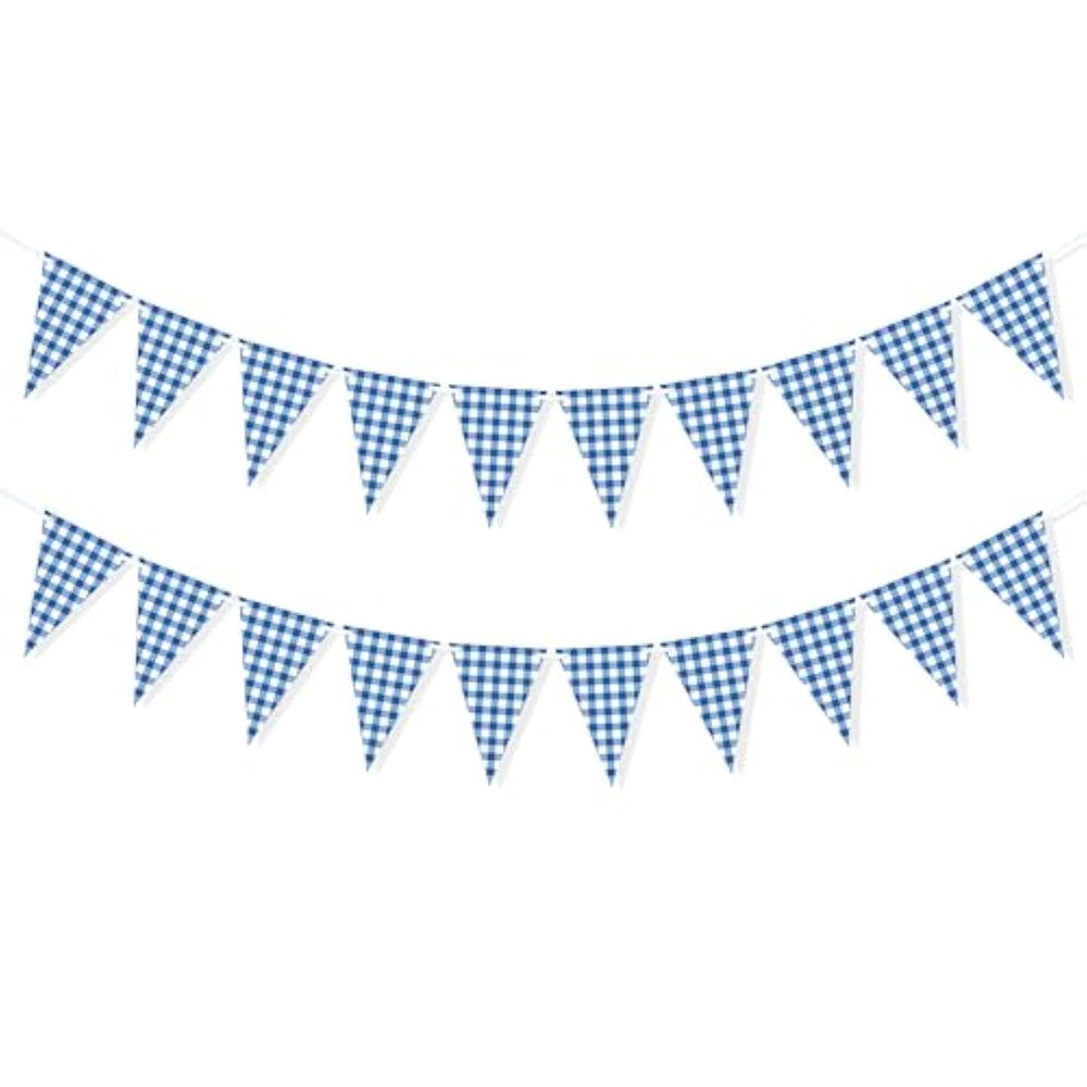 | Add A Nice Touch To Your Party With Our Blue And White Checkered Banner, Simple But Stylish, It Will Wow And Earns Compliment From Your Friends And Families. | | Package Includes 2Pcs Checkered Pennant Banner In Classic Blue And White Gingham Pattern, Matching Well With The Picnic Theme, Pre-Strung And Distance Adjustable That You Can Space Them Easily To The Perfect Site You Like. | | The Blue Checkered Triangle Flags Are Made Of Quality Paper Material, Double-Sided Printing Make The Banner More Special, The Picnic Party Banner Is 9.8 Feet Long And Each Triangle Flag Is 5.5 X 7.8 Inches, Each String Contains 10 Triangle Flags, Total 20 Flags. | | The Blue And White Checkered Flags Are Suitable For Picnic Theme Party, Bbq, Birthday, Baby Shower, Wedding, Christmas, Housewarming Party, Family Gatherings, Outdoor Activities, Or Any Blue Themed Events, Impress Your Guests. | | East To Hang On The Wall, Above The Table, Between Trees, Bamboo Fence Or Other Special Occasions, Also As A Backdrop To Take Interesting And Memorable Pictures. | |