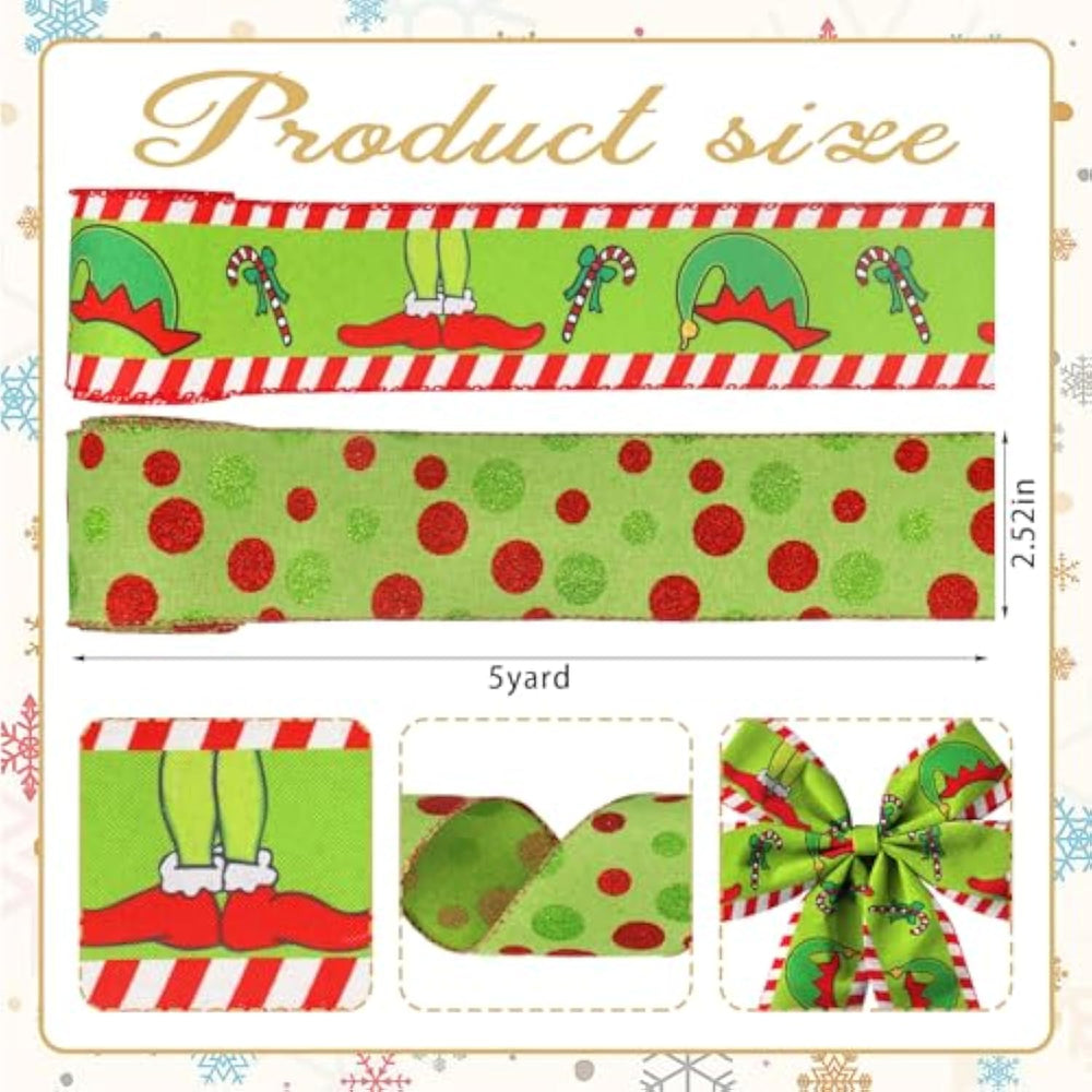 ?Material?Christmas Winter Wired Ribbon Is Made Of High Quality Polyester Fiber, The Christmas Ribbon'S Color Is Not Easy To Fade. It Has Metal Wires On Both Sides, So It'S Easy To Set Into The Desired Shape And Maintain The Shape Well. | ?Design?The Winter Christmas Theme Ribbon Are Composed Of Glitter Dots Green Ribbon And Candy Cane Grinch Green Ribbon. This Holiday Festive Ribbon Is Full Of The Joyful Atmosphere And Can Meet The Needs Of Christmas Decoration And Wrapping Needs. | ?Christmas Theme Ribbon Size?2 Roll, 2.48 Inches Wide And Each 15 Feet (5 Yards) Long. Long Enough To Satisfy Your Different Uses; You Can Cut It Into Any Size You Want According To Your Actual Needs, Such As Wrapping Christmas Gifts. | ?Use Widely?Decorate Your Christmas Gift Box For Adding A Special Touch, And Add More Creative Decorations To Your Family Christmas Party. | ?Excellent After-Sales Service?We Attach Great Importance To The Buyer’S Shopping Experience. If You Find Any Problems With Our Items, Please Feel Free To