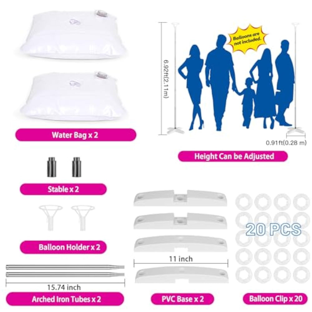?Balloon Column Kit?: The Only Patented Base Design On The Market, Is A Great Helper For Party Decorations.This Balloon Column Stand Kit Including Stainless Steel Telescopic Pole X 2, Balloon Clip X 20, Base X 2, Water Bag X 2, User Instruction X 1. Great Value Balloon Tower Stand Come With Enough Accessories Allow You To Safely Carry Out Diy Party Decoration. Balloons Are Not Included | ?Sturdy And Stable?: Compare To Those Balloon Towers That Are Light Weight And Easy To Fall, Our Balloon Column Is Way More Stable Due To The One-Piece Stainless Steel Telescopic Design.You Can Also Use The Water Bag To Fix It More Stable When Use For Outdoor | ?Super Durable Balloon Stands?: High Quanlity Balloon Pillars With Base, The Upgraded Version Of The Balloons Kit Features A Thickened Stainless Steel Retractable Rod . Corrosion Resistance, No Deformation, No Breakage, Truly Reusable. You Don'T Have To Waste Money On Disposable Plastic Rod Balloon Kits | ?Adjustable Easy Assembly?: The One-Piece Stainless Steel Telescopic Pole Structure Is Extremely Easy To Use, Strong And Not Easy To Deform, There Are Not Many Small Parts, Easy To Store, Not Easy To Lose. The Balloon Column Can Be Adjust From 1.5 Feet To 6.92 Feet. The Balloon Pump Can Help You Inflate Balloons Quickly,It Only Takes A Short Time To Install This Balloon Stand | ?Wide Application?: This Balloon Column Kit With Base Can Work Well As Balloon Arch Stand Kit Great Suitable For Birthday Parties, Family Gatherings, Christmas, Halloween, Thanksgiving, Banquets, Weddings, Baby Showers, Graduation Ceremonies, Etc. As Long As There Is A Party Or Celebration, It Will Be Your Best Party Decoration Partner. Please Feel Free To