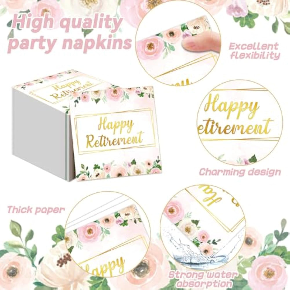 | What You Will Get: You Will Receive 50 Pcs 9 Inch Pink Floral Retirement Plates, 50 Pcs 7 Inch Pink Floral Retirement Plates, 50 Pcs 6.3" Pink Floral Retirement Napkins And 50 Pcs Pink Forks, Each Set Can Serve 50 Guests, The Quantity Is Sufficient To Meet Your Party Needs. | | Charming Flower Design: Our Farewell Coworker Party Decorations Are All Designed With Beautiful Pink Flower Patterns And Gold Rim, Looks Bright And Comfortable, They Will Creating A Nice Atmosphere For Your Retirement Party, So You Can Have A Memorable Party Time. | | Save Your Time: No Wash Up! Save Your Time On Cleaning. You Just Need To Throw These Flower Paper Plates Into The Trash Can After The Party. You Can Spend More Time Playing With Your Friends And Families At Your Retirement Goodbye Themed Party. | | Reliable Material: Our Flower Goodbye Coworker Party Supplies Are All Made Of Premium Paper, Coated With Film, Durable And Waterproof, Made Of Thicken Material, With Clear Printing, Not Easy To Fade, Break Or Deform, You Can Use It With Confidence. | | Wonderful Party Complement: Our Vintage Floral Farewell Dinnerware Is An Ideal Choice For Retirement Themed Party, It Is A Wonderful Complement With Your Beautiful Party Tablecloth, Banner, Backdrops, Making Your Birthday Party More Eye-Catching And Impressive. | |